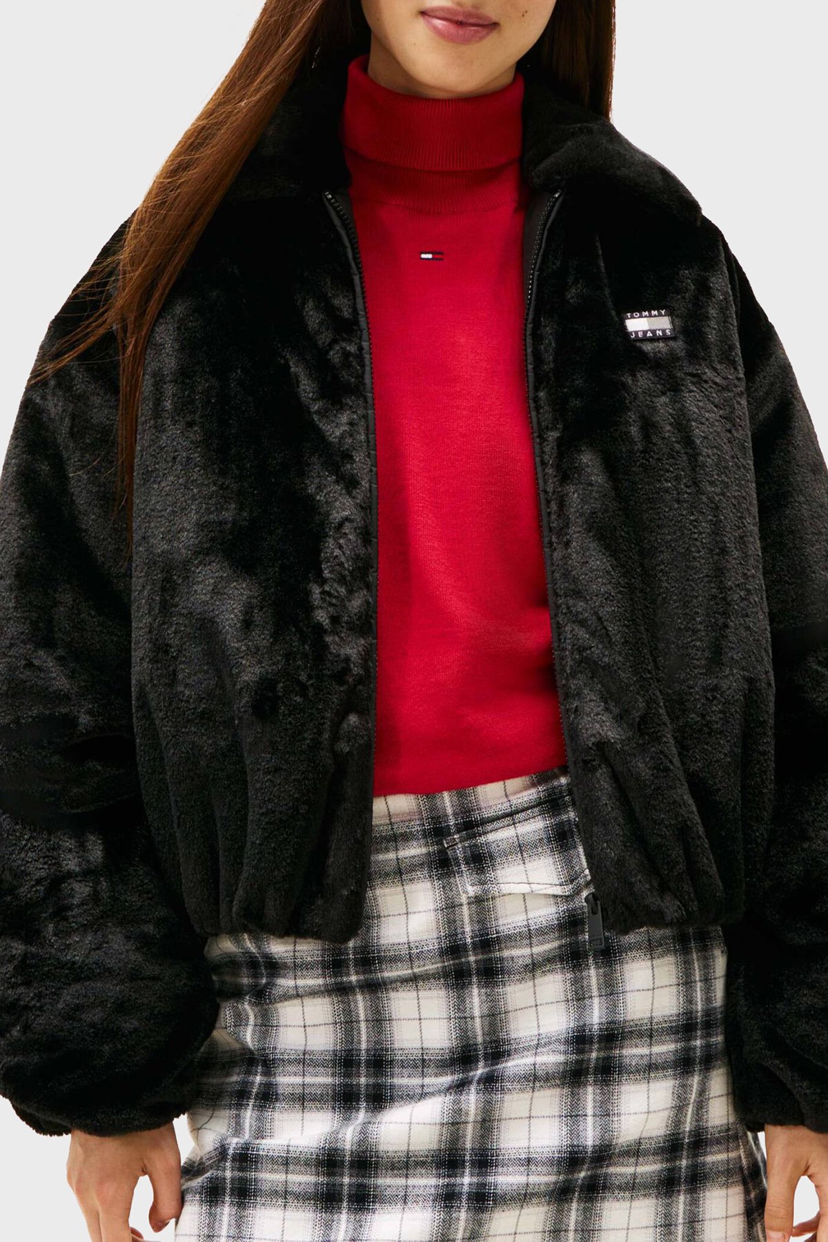 Logolu Relaxed Fit Ceket Yaka Yumuşak Dokulu Bayan Mont DW0DW21669 BDS SİYAH
