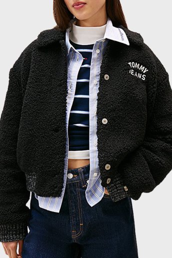 Logolu Relaxed Fit Teddy Bomber Bayan Ceket DW0DW21666 BDS SİYAH