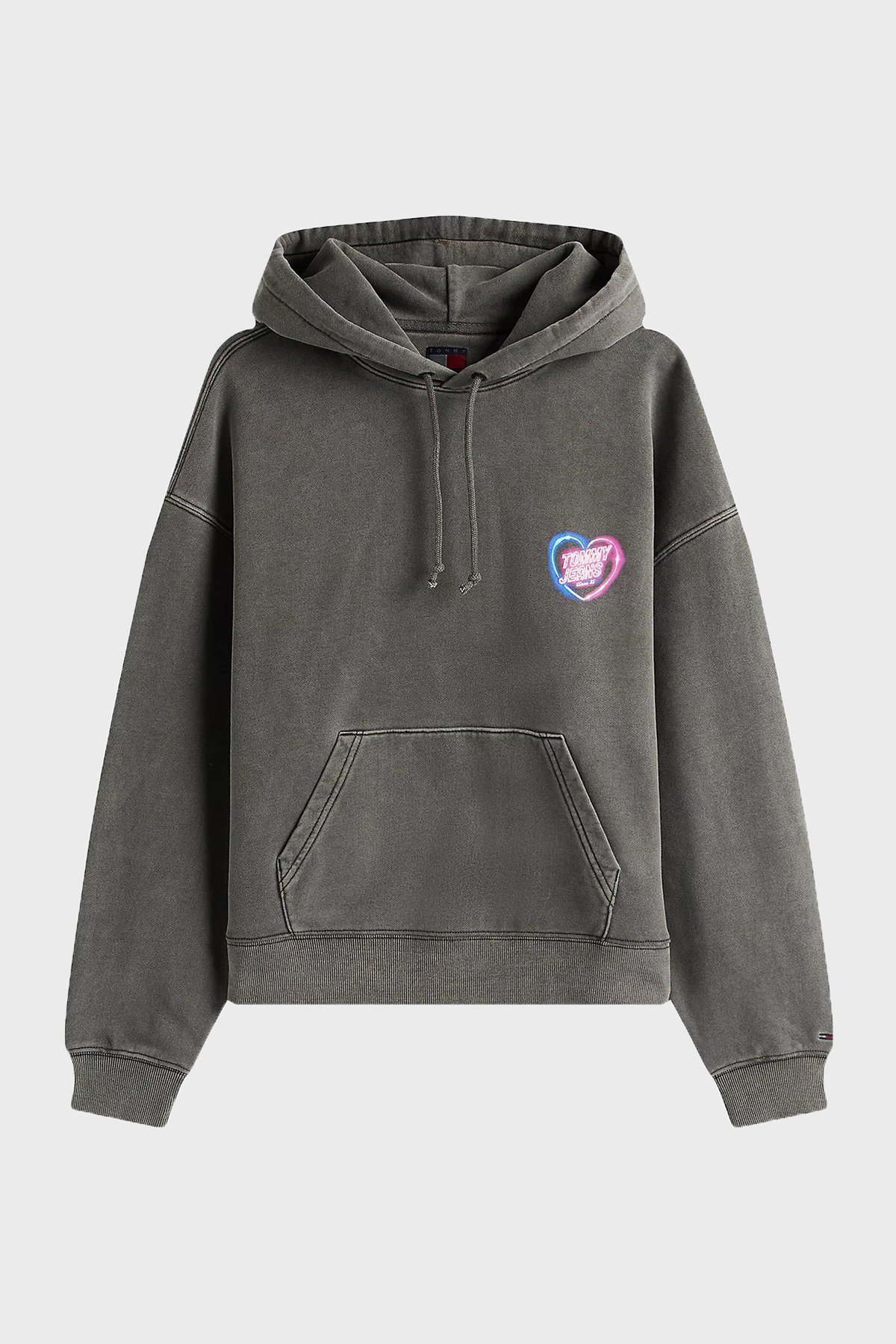 Neon Logo Baskılı Pamuklu Boxy Fit Kapüşonlu Bayan Sweat DW0DW20945 BDS SİYAH
