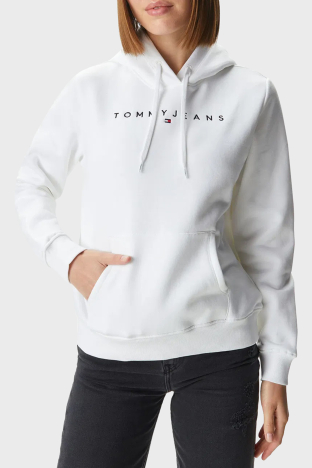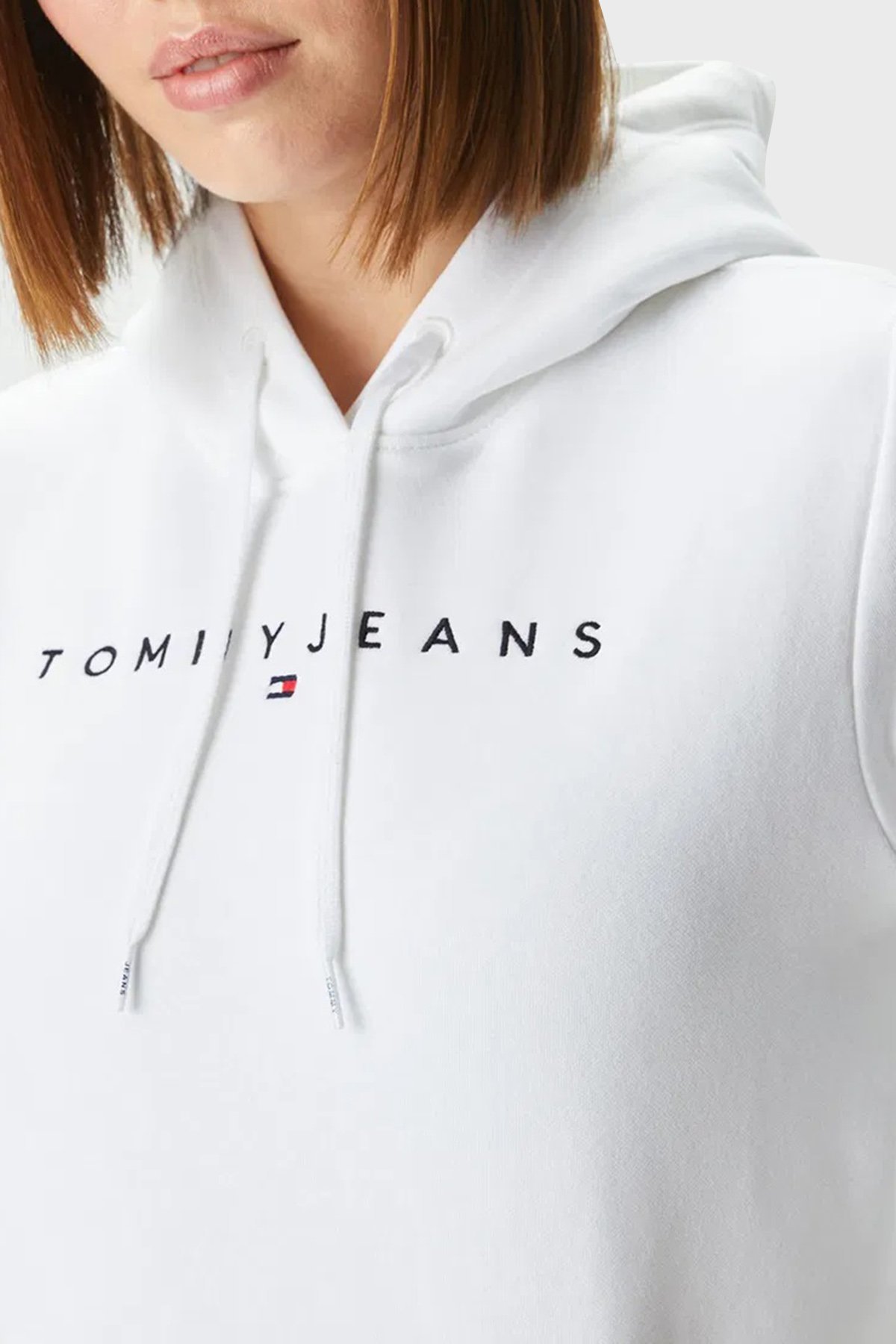 Pamuk Karışımlı Regular Fit Kapüşonlu Kanguru Cepli Logolu Bayan Sweat DW0DW17324 YBR BEYAZ