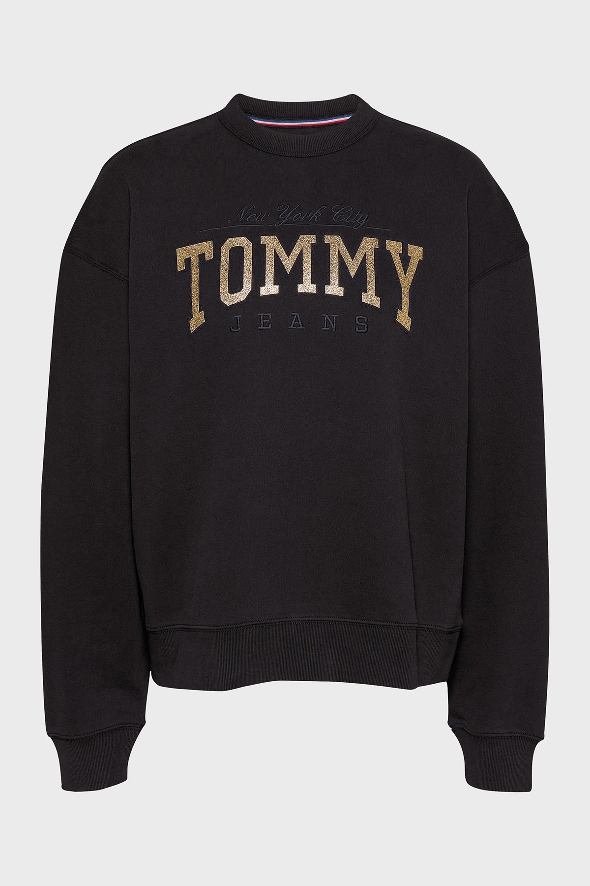 Pamuk Karışımlı Relaxed Fit Bisiklet Yaka Logolu Bayan Sweat DW0DW19845 BDS SİYAH