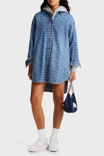 -Tümü logo kaplı pamuk kot karışımlı mini elbise