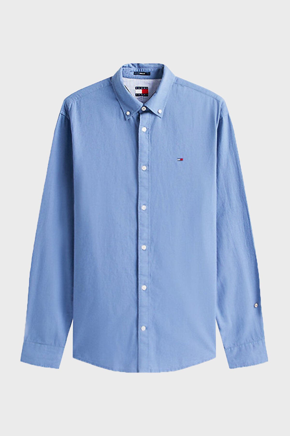 Pamuk ve Keten Karışımlı Regular Fit Düğmeli Yaka Erkek Gömlek DM0DM20875 PO6 İNDİGO
