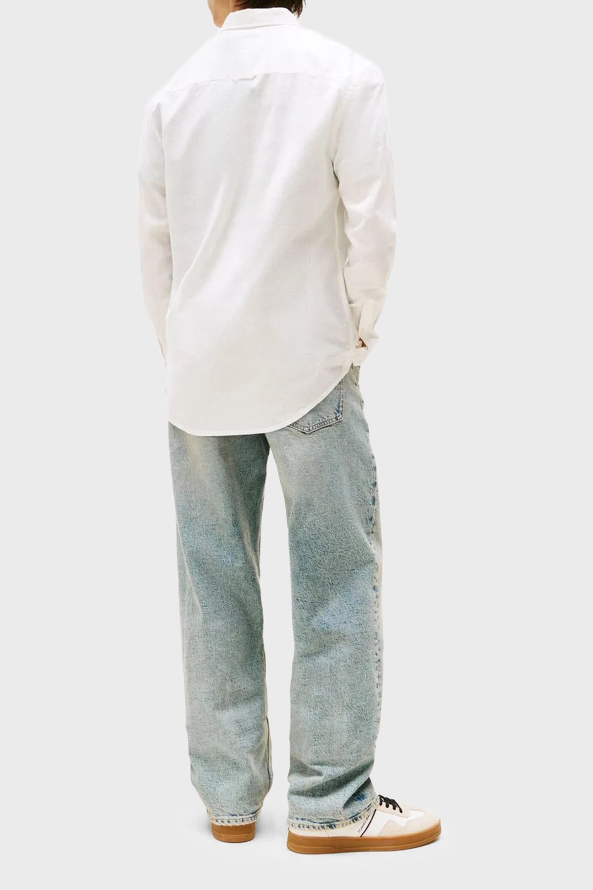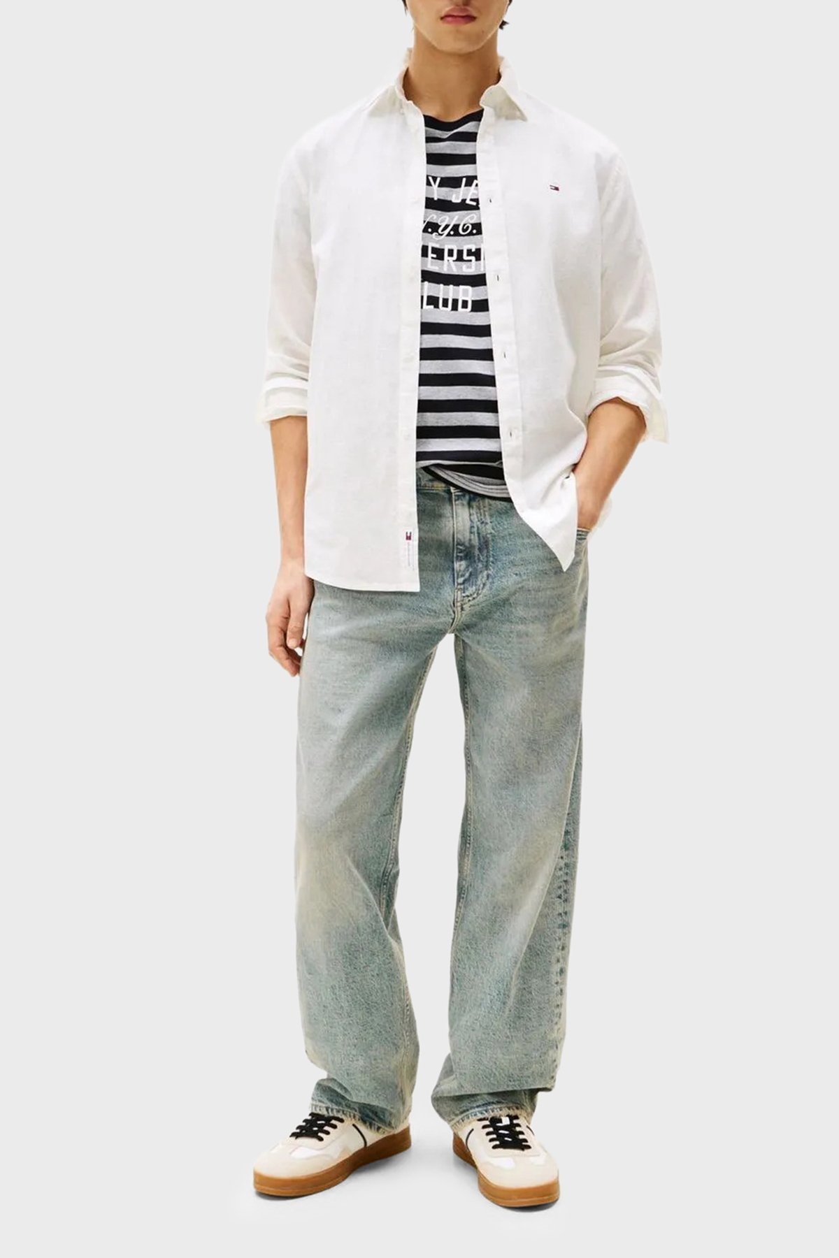 Pamuk ve Keten Karışımlı Regular Fit Düğmeli Yaka Erkek Gömlek DM0DM20875 YBL BEYAZ