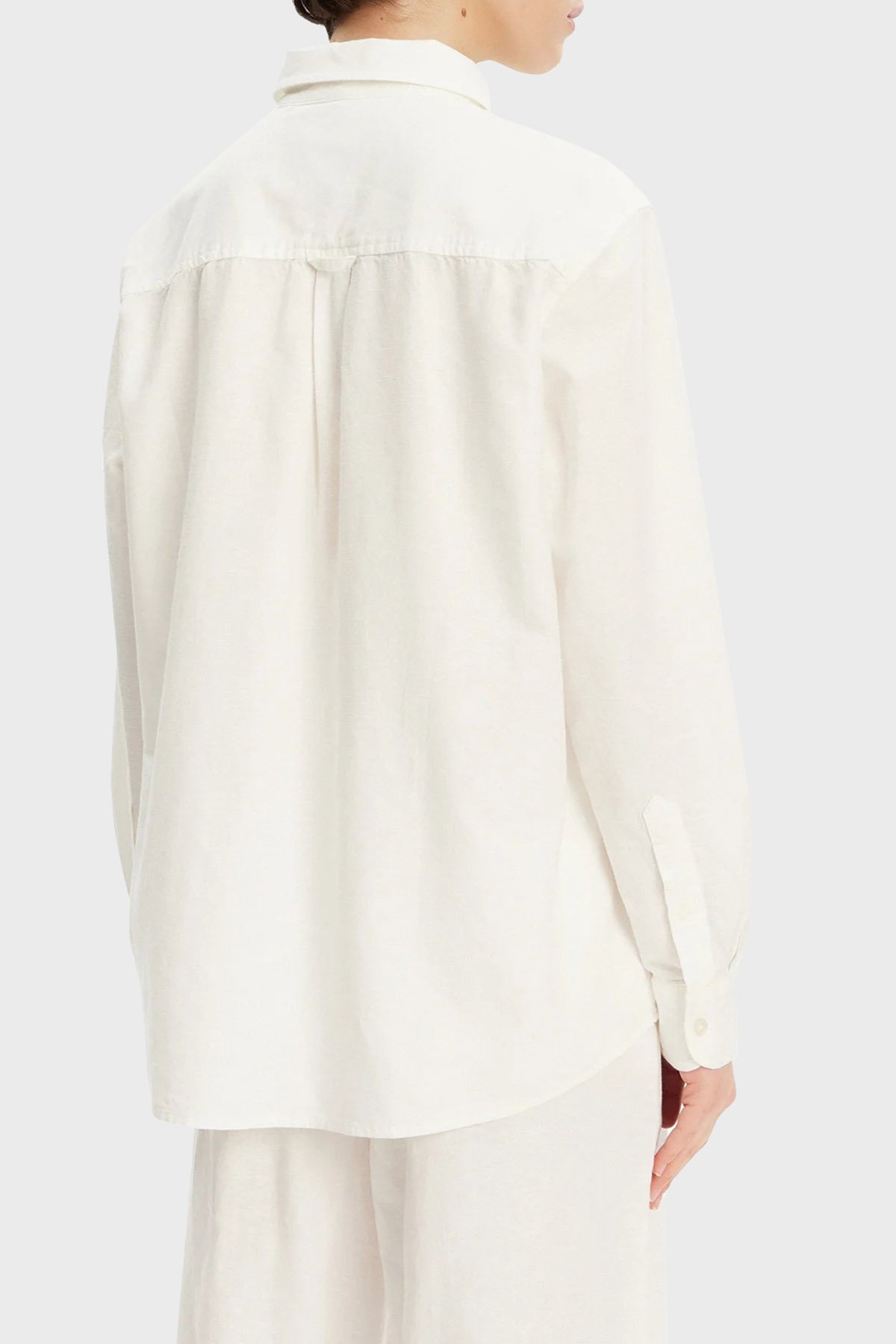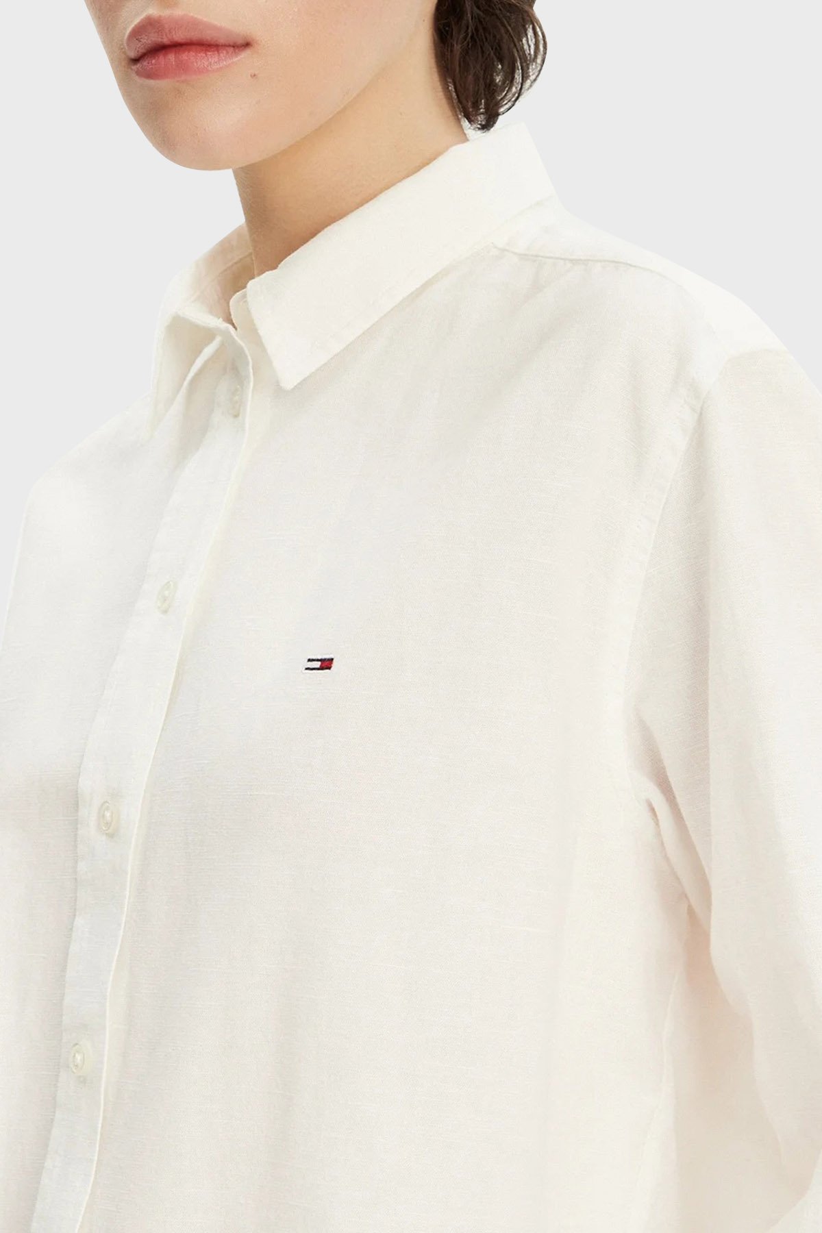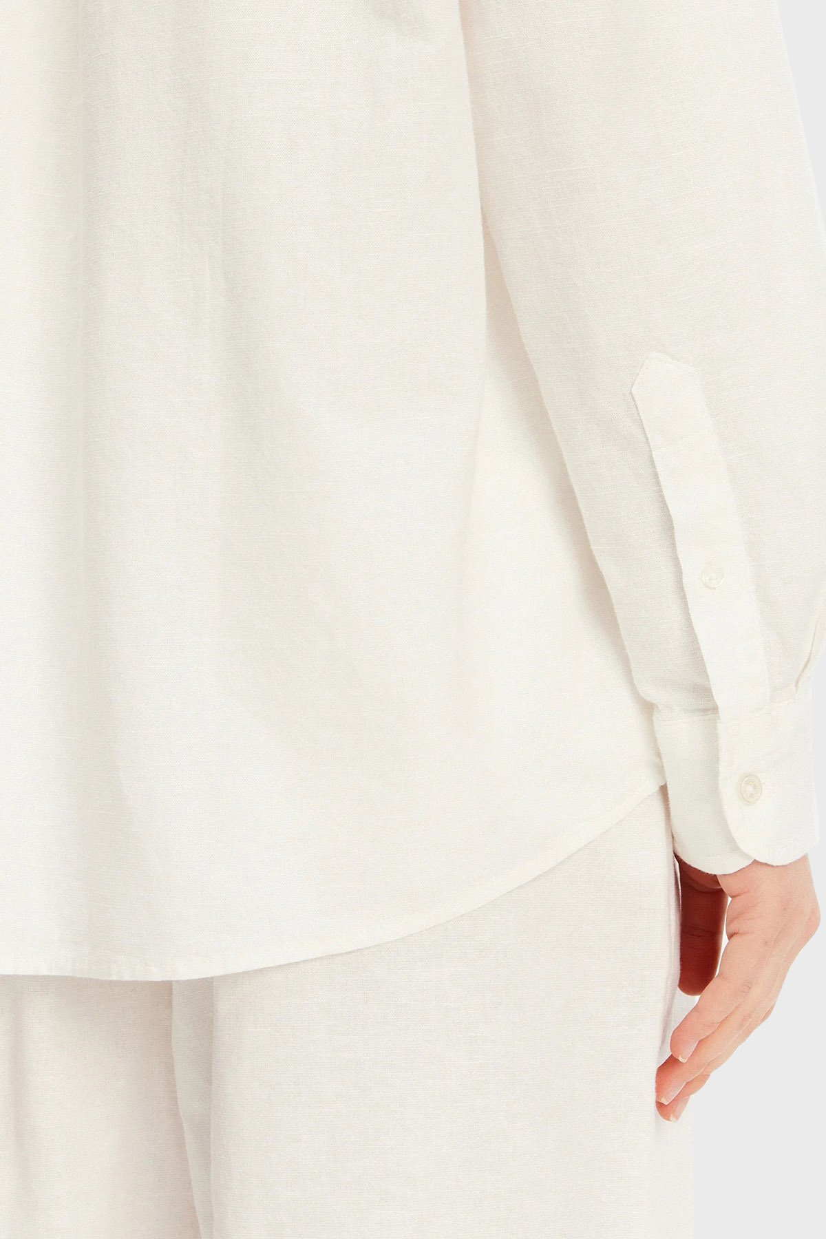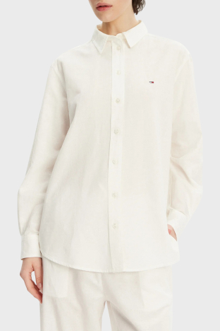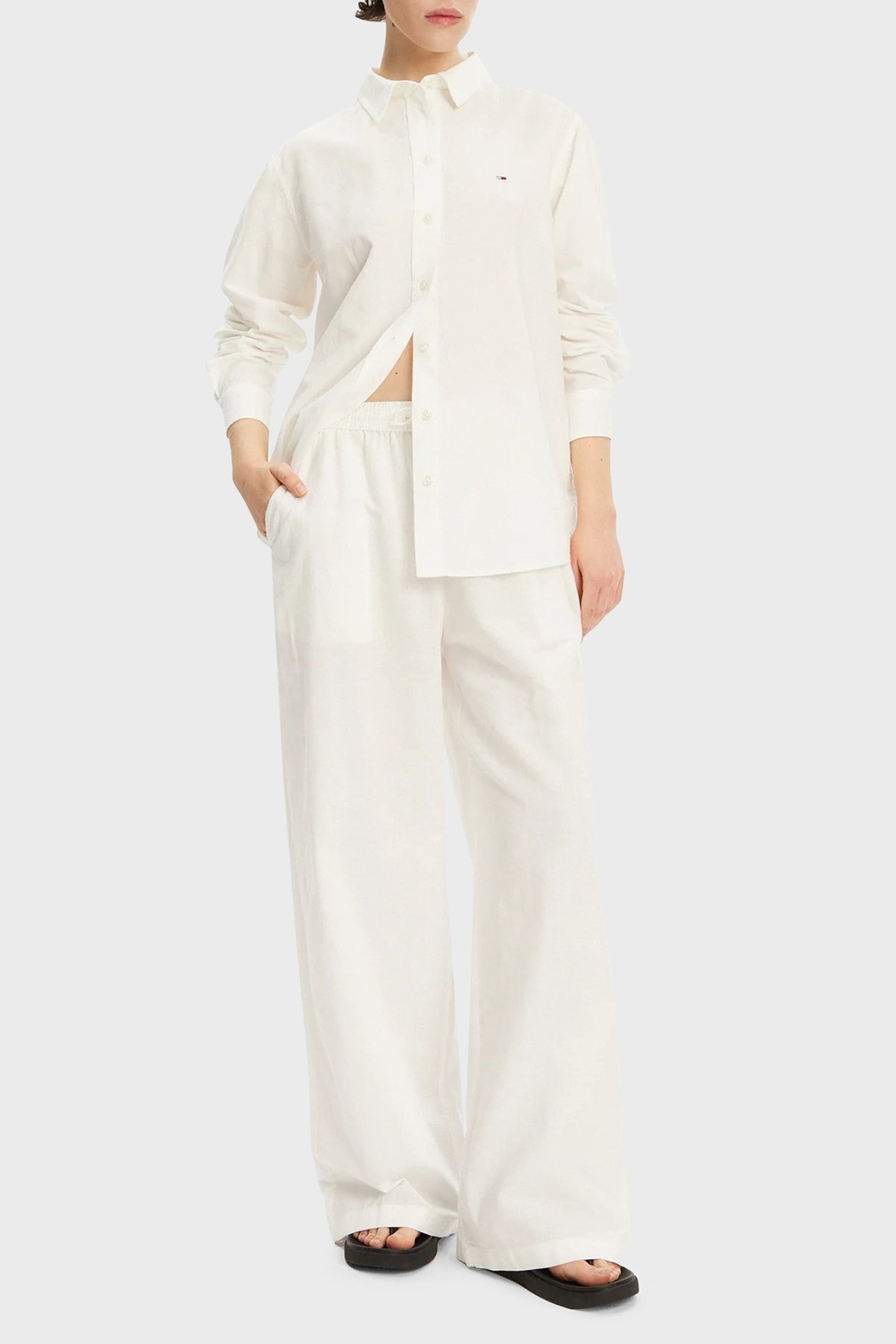Pamuk ve Keten Karışımlı Relaxed Fit Düz Yaka Bayan Gömlek DW0DW20292 YBL BEYAZ