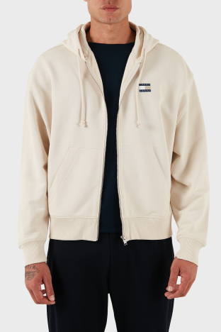 Pamuklu Comfort Fit Kapüşonlu Fermuarlı Logolu Erkek Sweat DM0DM21626 ACH KREM
