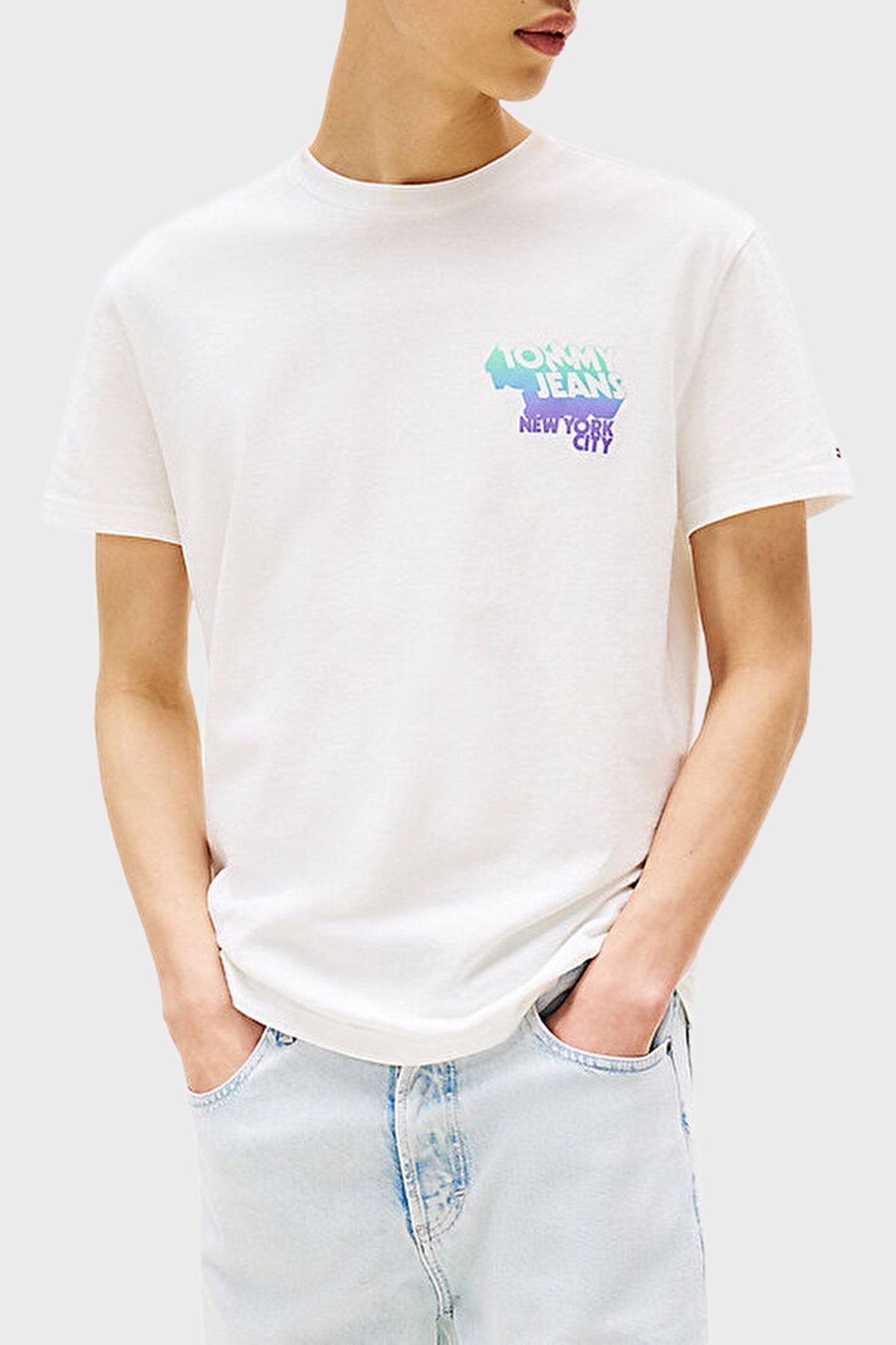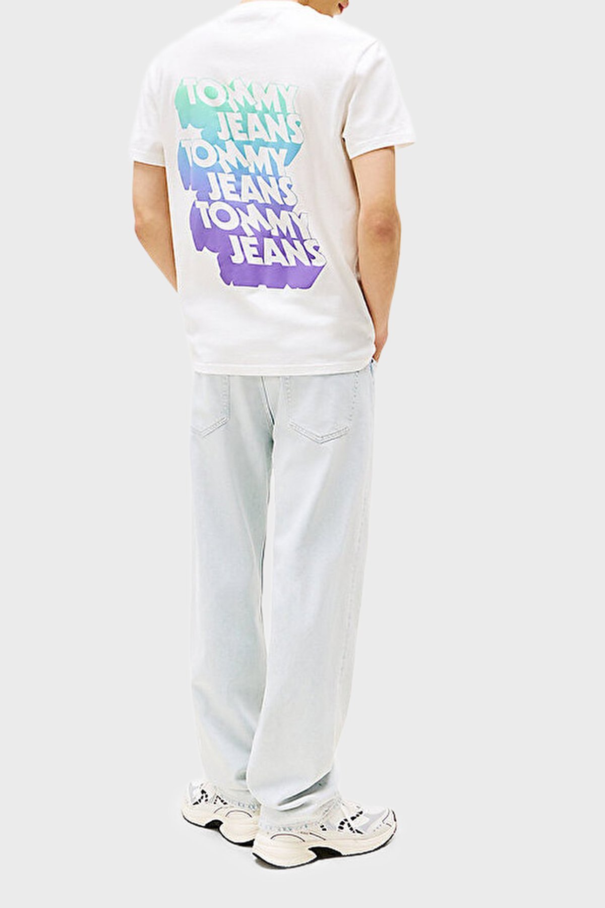 Pamuklu Regular Fit Bisiklet Yaka Sırtta Logo Detaylı Erkek T Shirt DM0DM21589 YBL BEYAZ