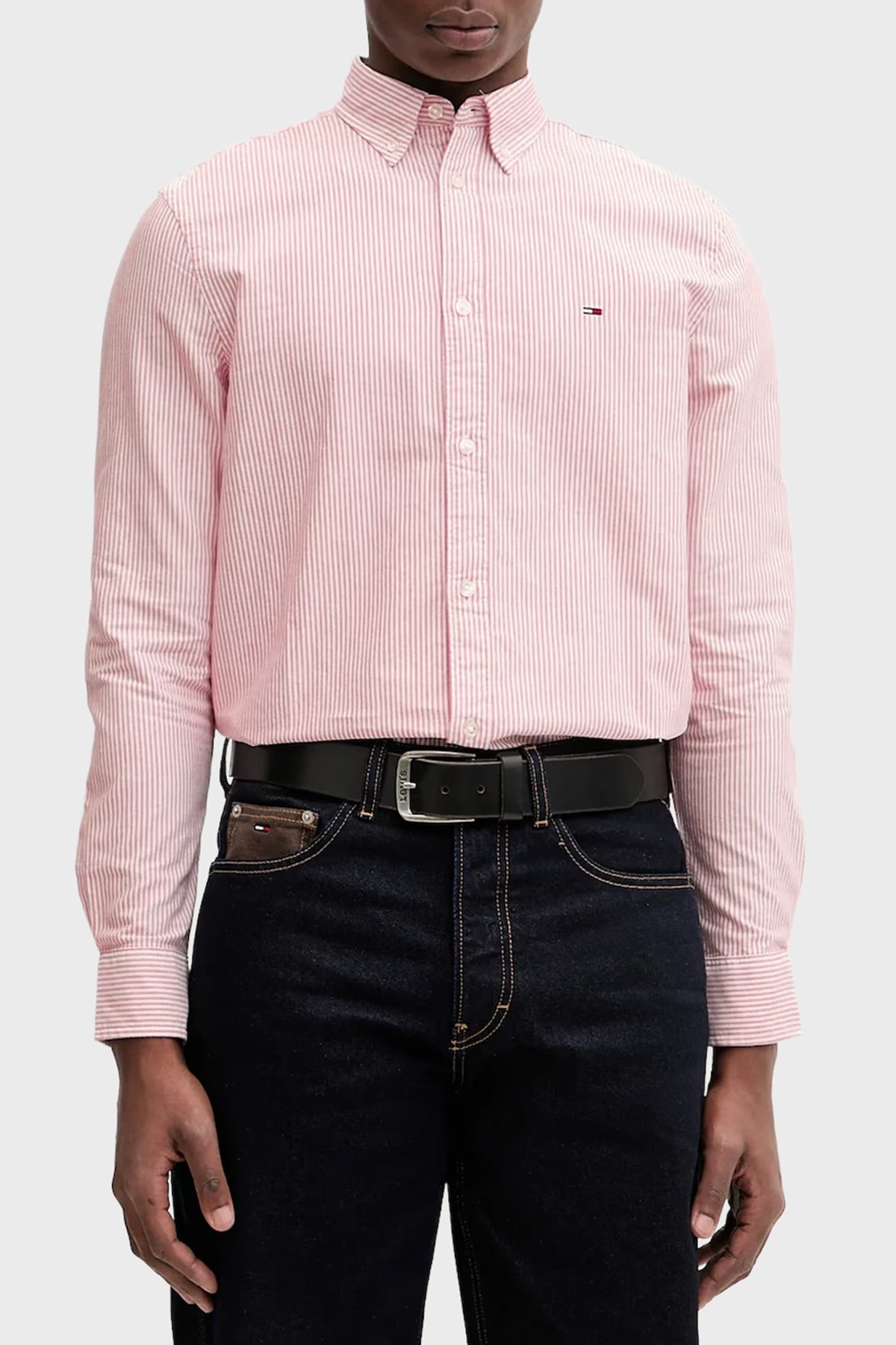 Pamuklu Regular Fit Çizgili Uzun Kollu Erkek Gömlek DM0DM20668 XL0 KIRMIZI