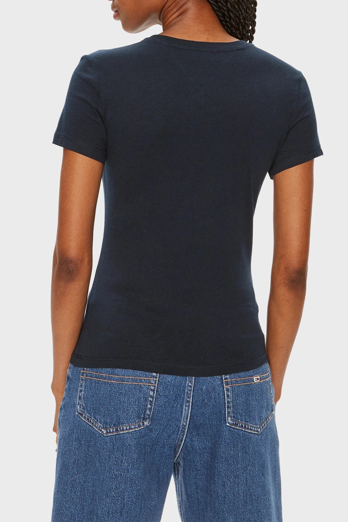 Pamuklu Slim Fit Logo Baskılı Bisiklet Yaka Kadın T Shirt DW0DW18398 0G0 LACİVERT