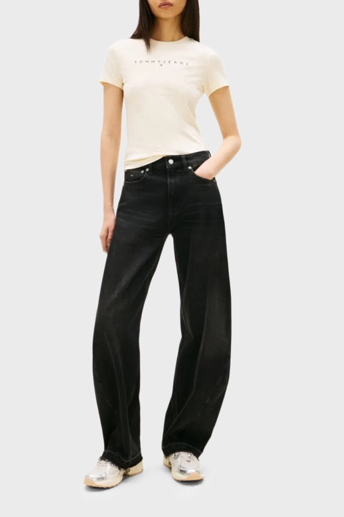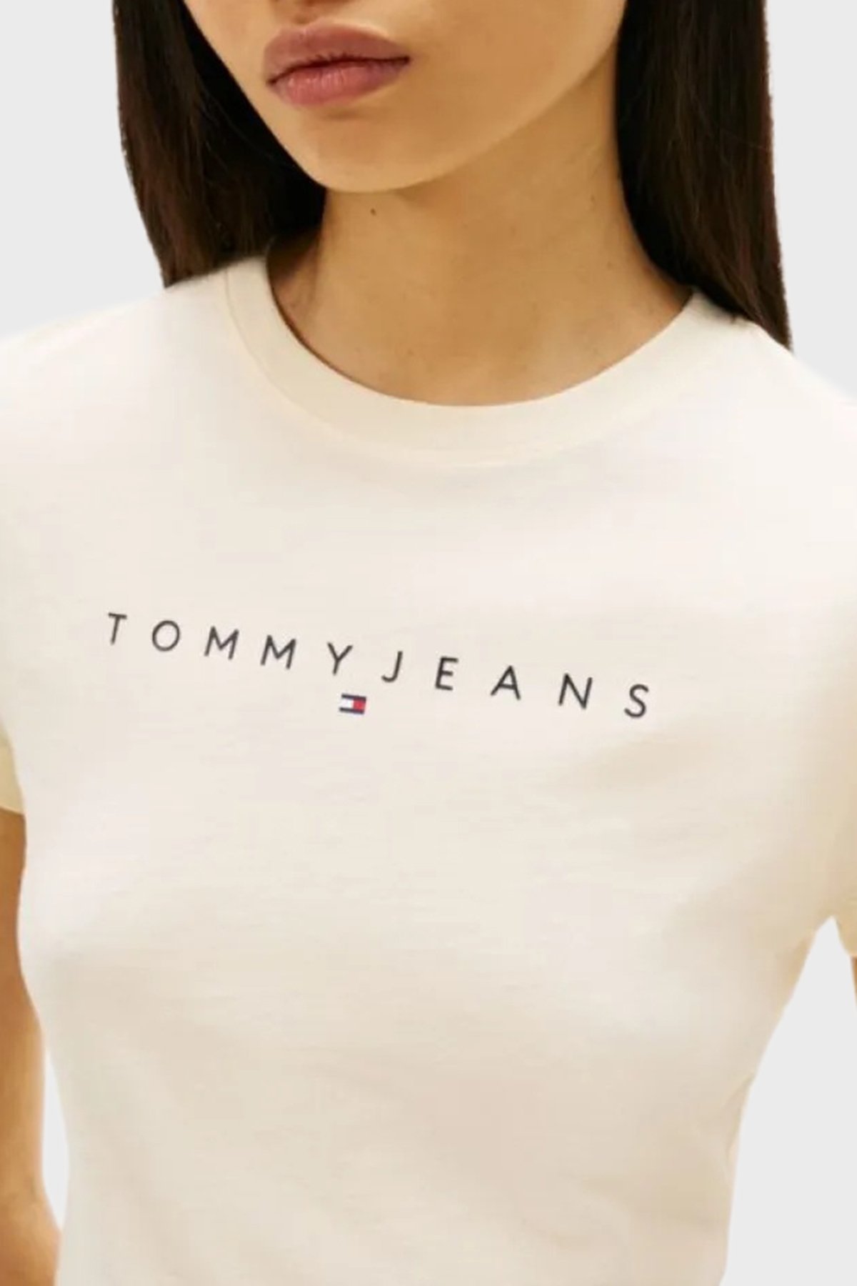 Pamuklu Slim Fit Logo Baskılı Bisiklet Yaka Kadın T Shirt DW0DW18398 AA7 BEJ