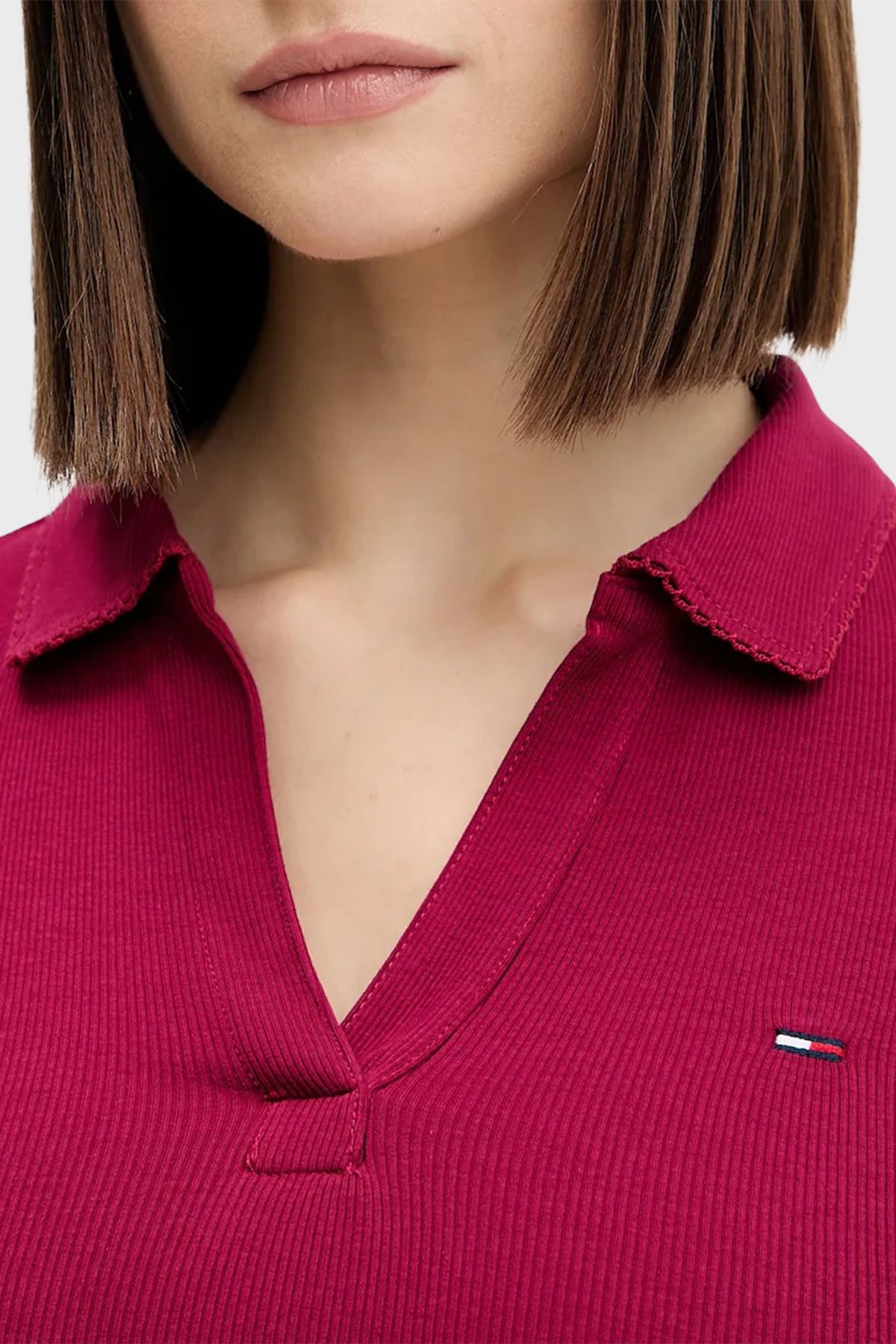 Pamuklu Slim Fit Logolu Bayan Polo Yaka T Shirt DW0DW21933 VLC VİŞNE
