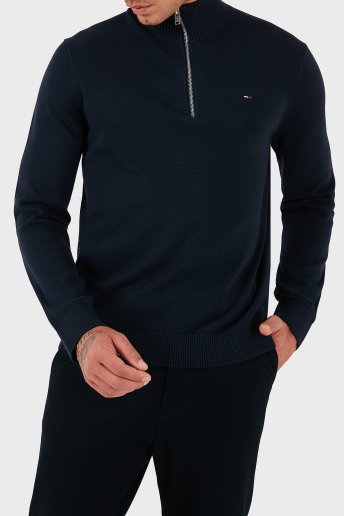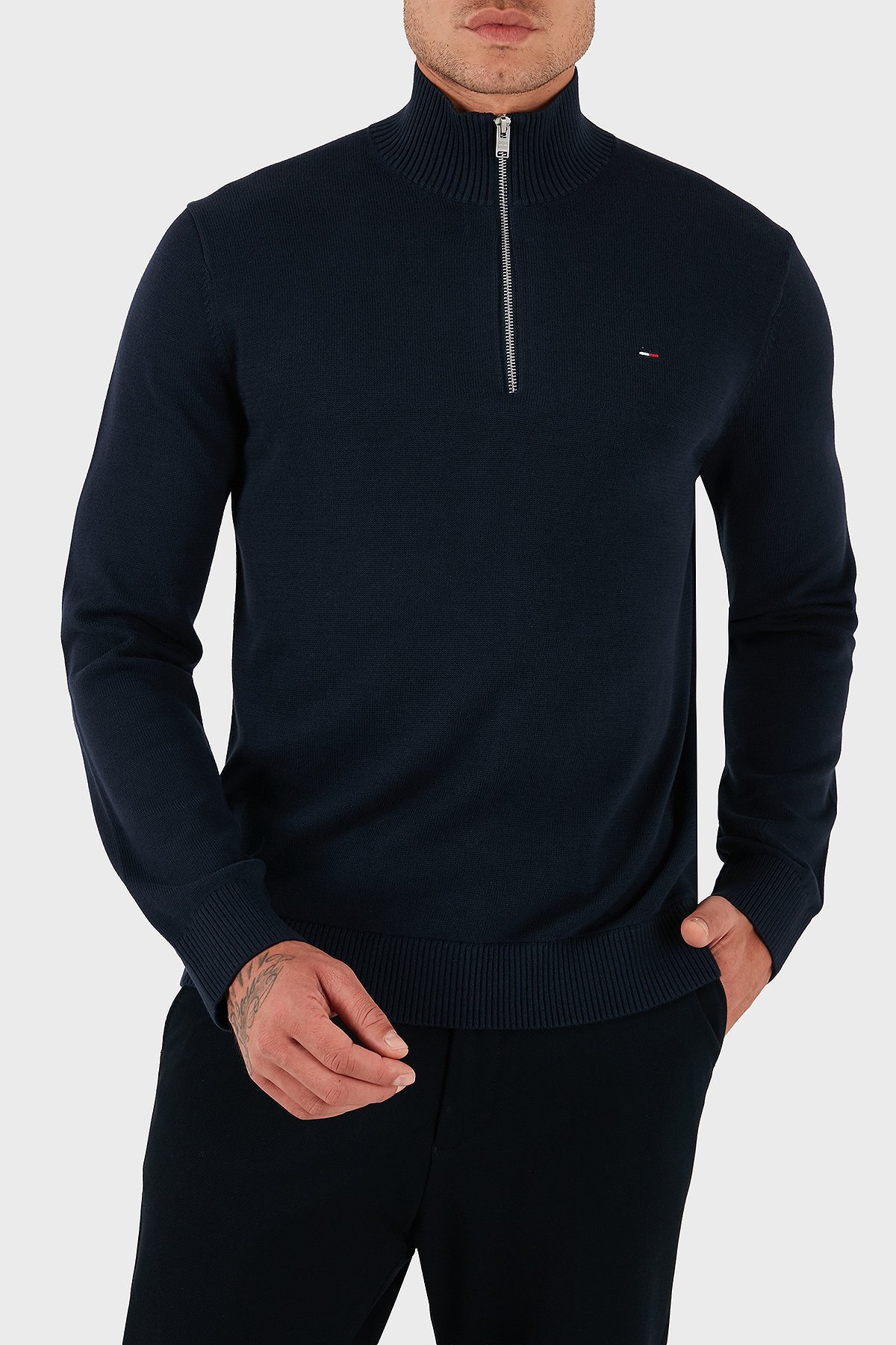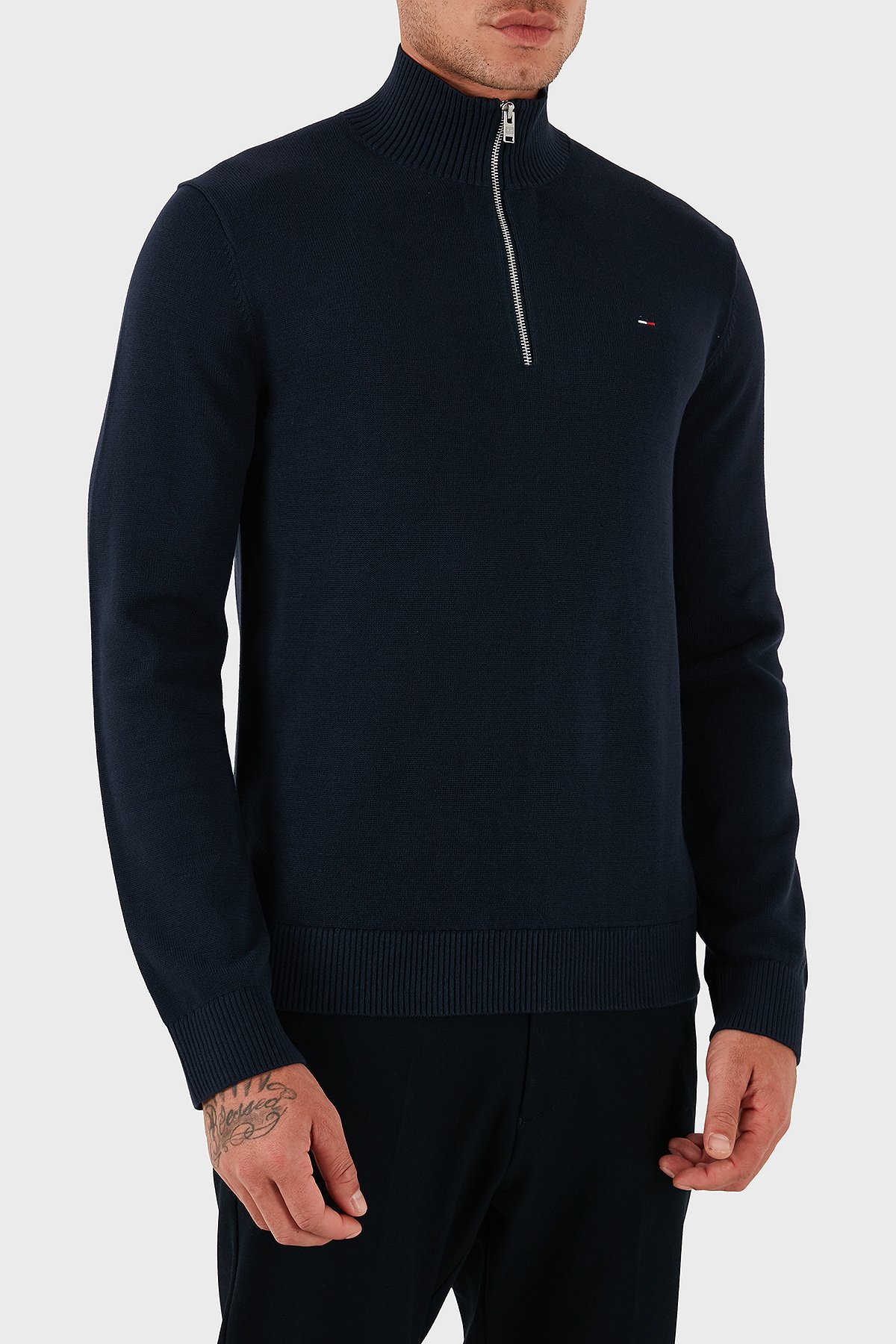 Pamuklu Slim Fit Yarım Fermuarlı Dik Yaka Erkek Kazak DM0DM21654 C1G LACİVERT