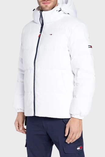 Regular Fit Çıkarılabilir Kapüşonlu Şişme Erkek Mont DM0DM15447 YBR BEYAZ