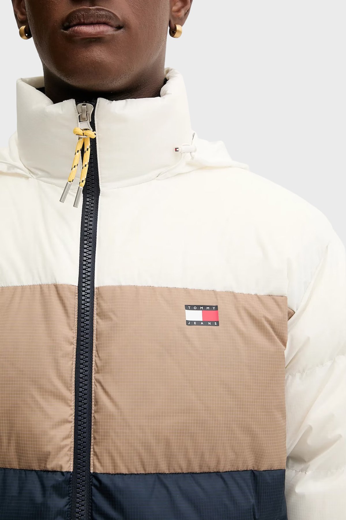 Regular Fit Logolu Dik Yaka Kapüşonlu Erkek Mont DM0DM22117 YBL BEYAZ