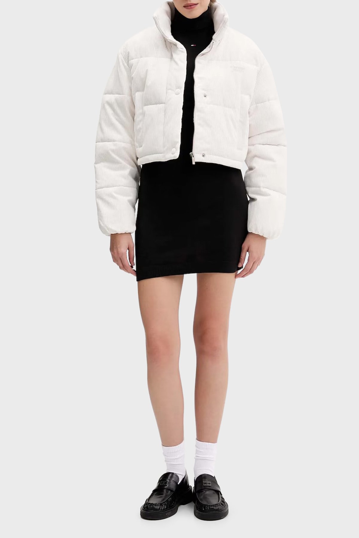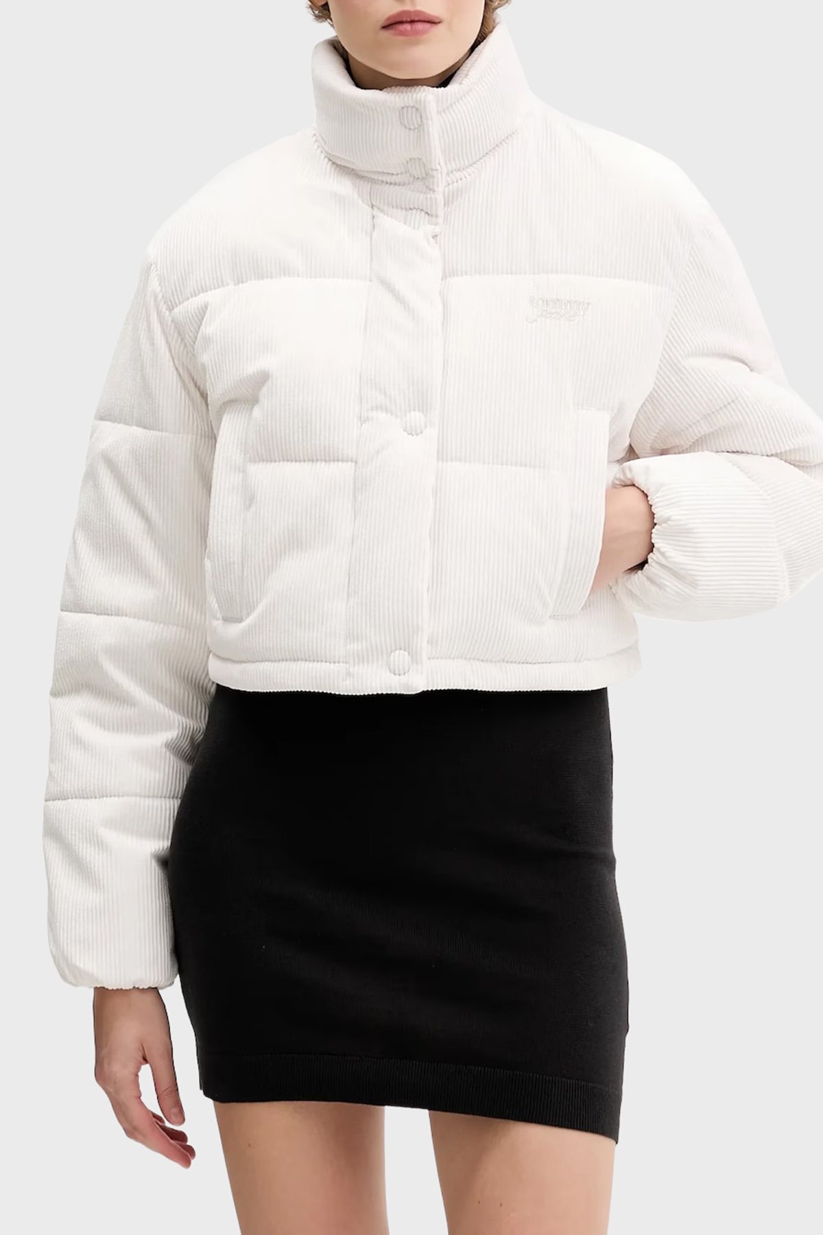 Su İtici Relaxed Fit Dik Yaka Kadife Bayan Mont DW0DW21658 YBH BEYAZ
