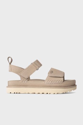 Logolu Süet Kalın Taban Cırtlı Bayan Sandalet 1136783 BEJ