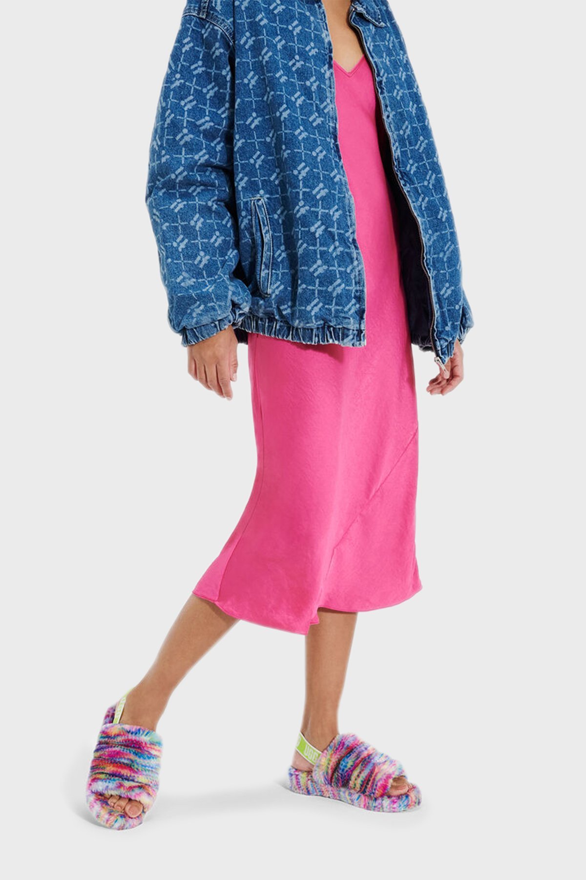 W Fluff Yeah Pixelate Elastik Bantlı Bayan Terlik 1125007 FUŞYA-YEŞİL