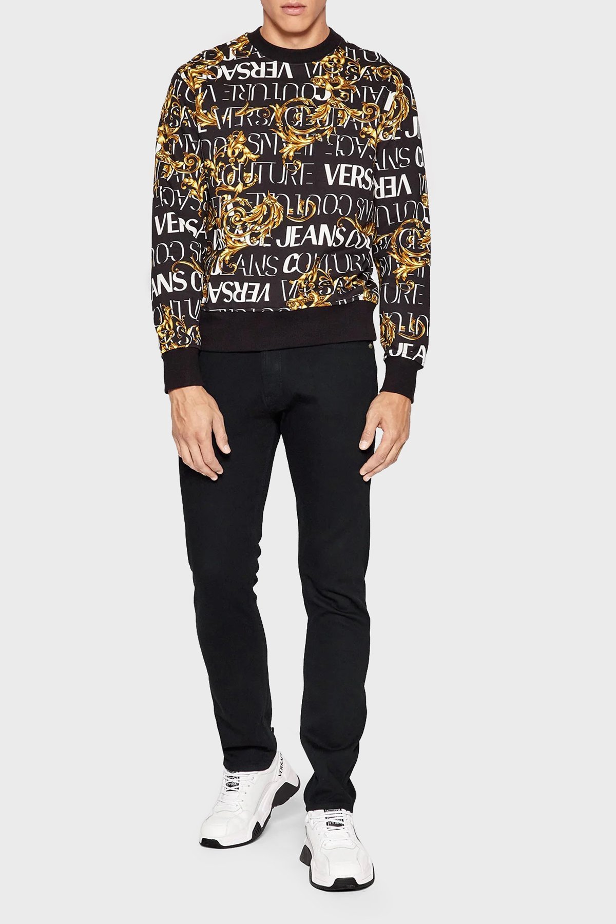 Versace % 100 Pamuk Regular Fit Bisiklet Yaka Erkek Sweat 73GAI3R0 FS041 G89 SİYAH