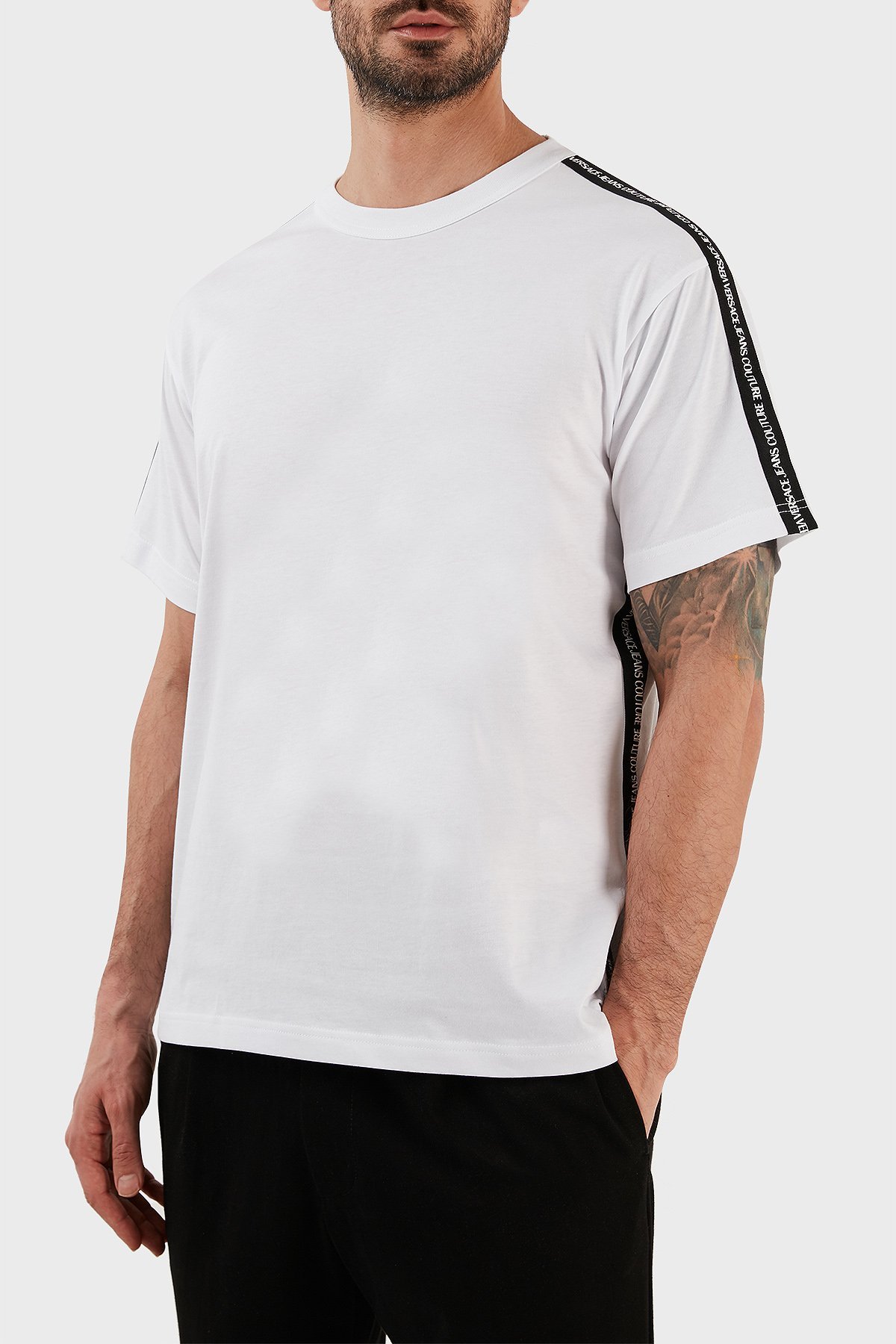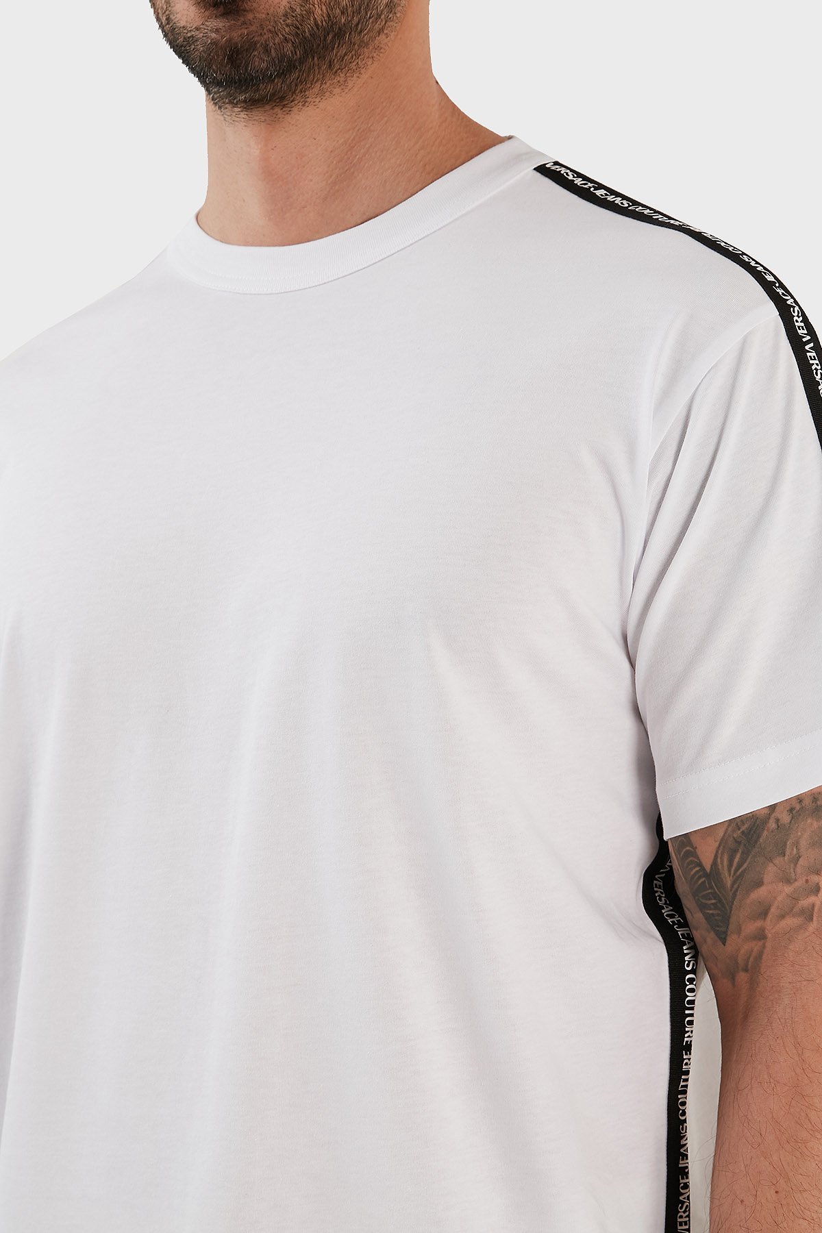 Versace % 100 Pamuk Regular Fit Bisiklet Yaka Erkek T Shirt 73GAH6R4 J0001 003 BEYAZ