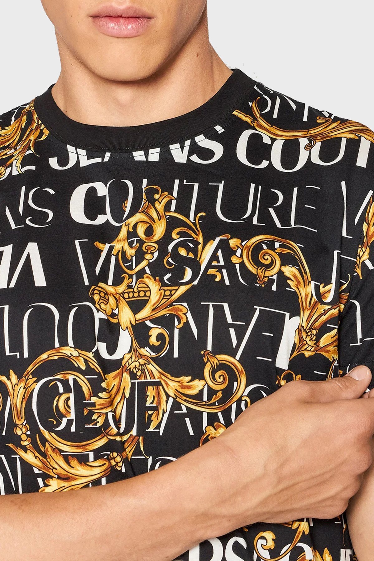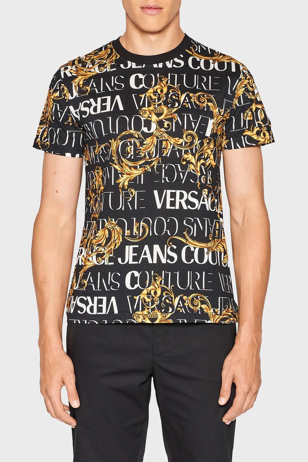 Versace % 100 Pamuk Regular Fit Bisiklet Yaka Erkek T Shirt 73GAH6S0 JS099 G89 SİYAH