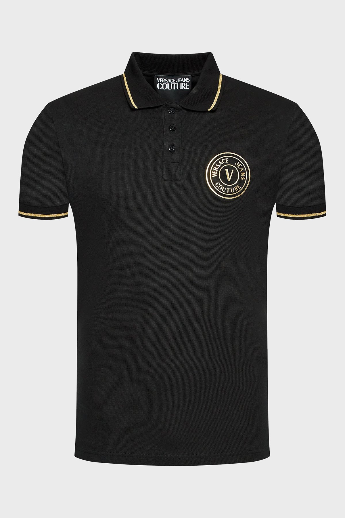 Versace % 100 Pamuk Slim Fit Düğmeli Erkek Polo T Shirt 73GAGT01 CJ01T G89 SİYAH
