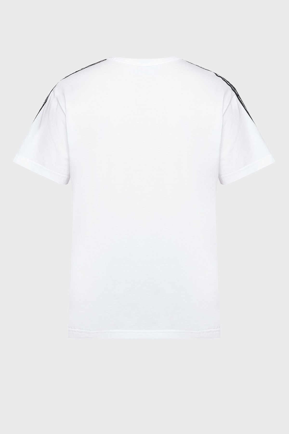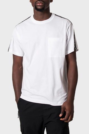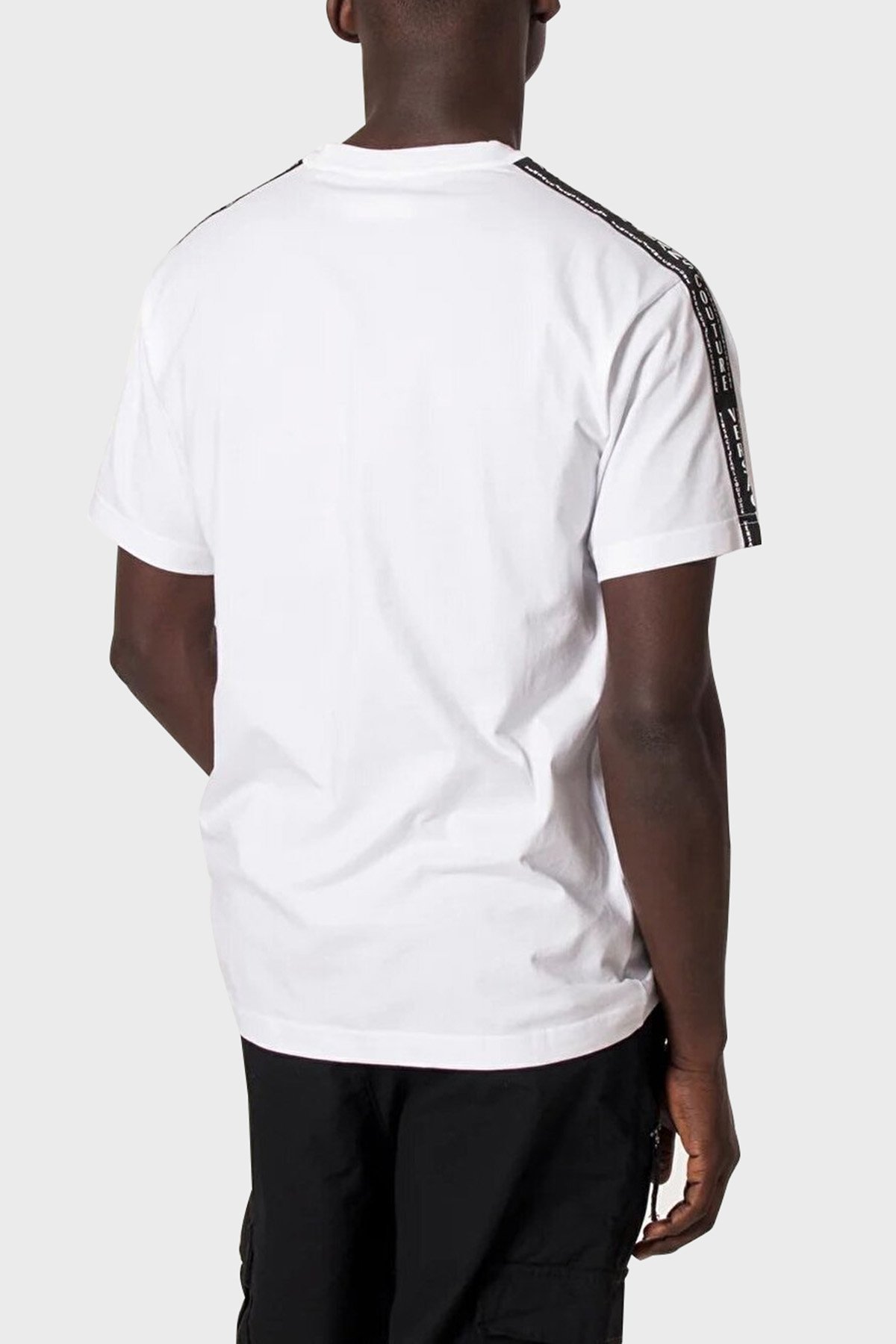 % 100 Pamuk Logo Şerit Detaylı Bisiklet Yaka Regular Fit Erkek T Shirt 74GAHY03 CJ00Y 003 BEYAZ