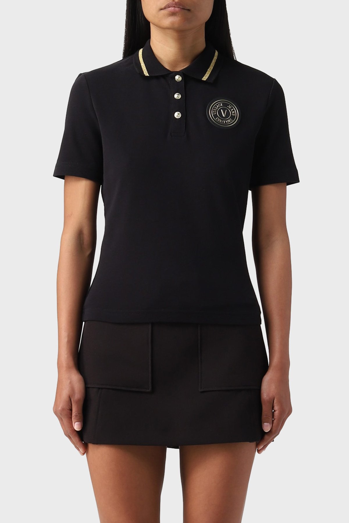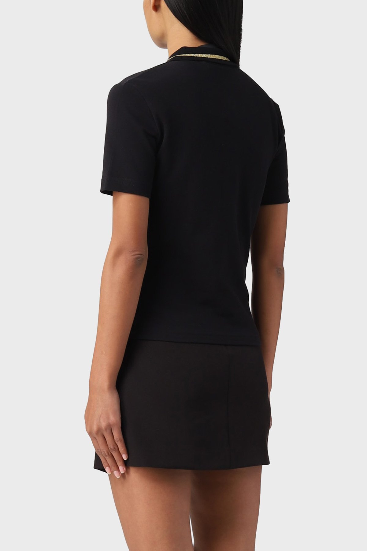 % 100 Pamuk Logolu Regular Fit Bayan Polo Yaka T Shirt 74HAGT08 CJ01T G89 SİYAH
