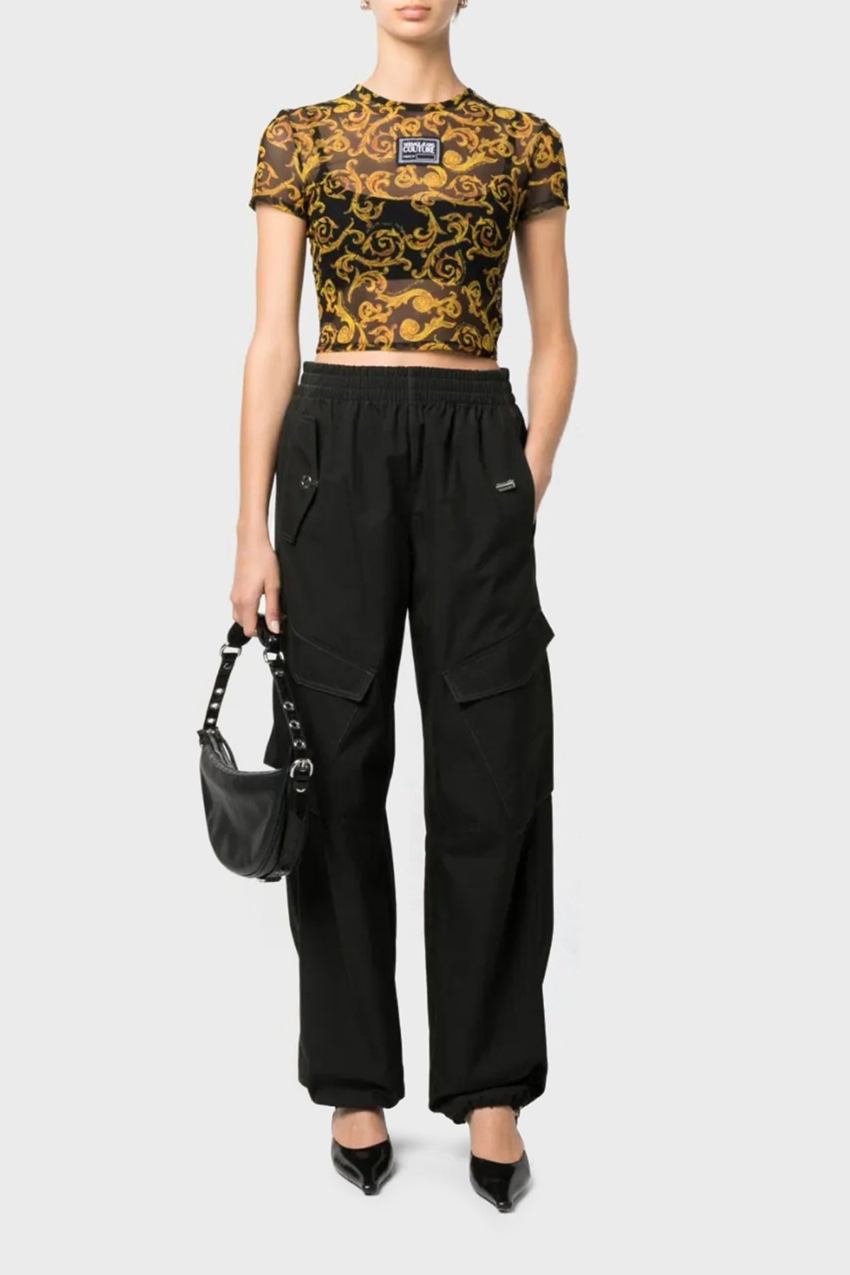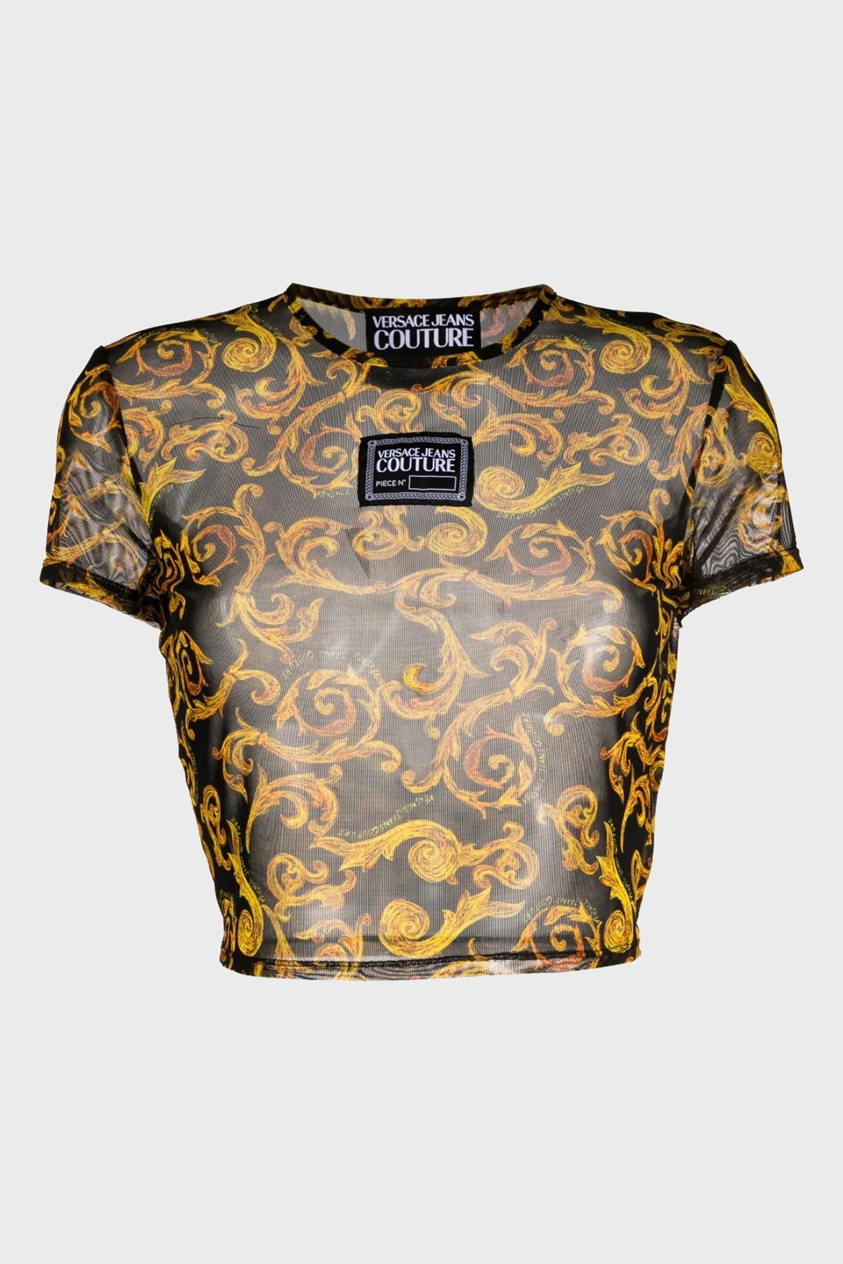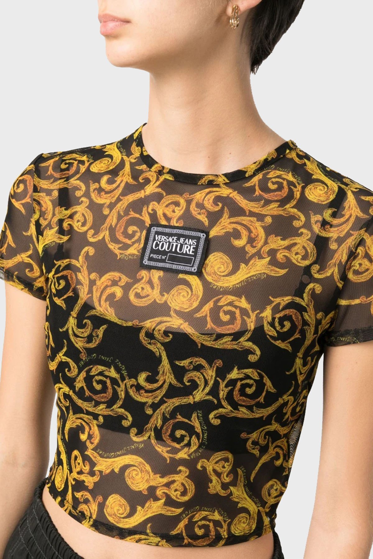 Barok Desenli Bisiklet Yaka Slim Fit Transparan Bayan T Shirt 74HAH602 JS157 G89 SİYAH