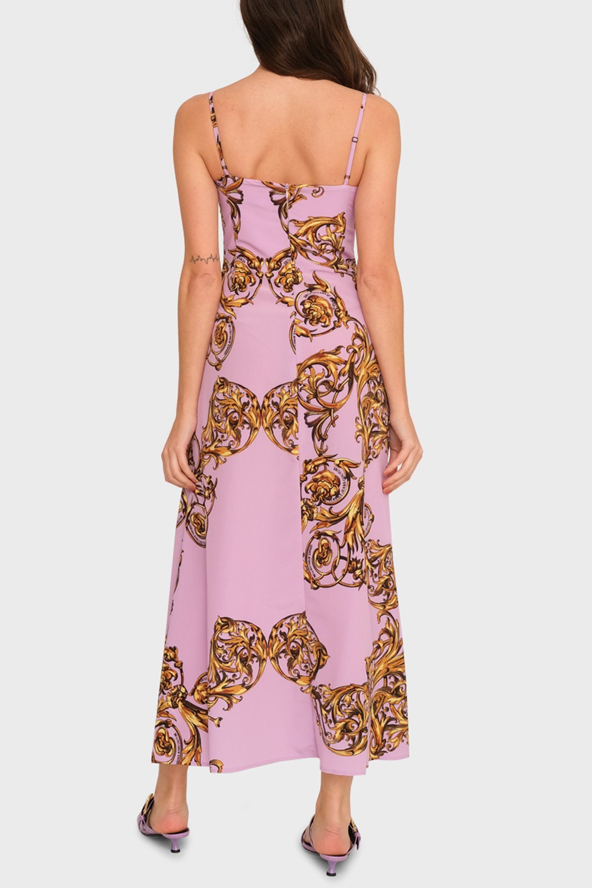 Barok Desenli İp Askılı Yırtmaçlı Uzun Bayan Elbise 72HAO921 NS062 G30 LİLA