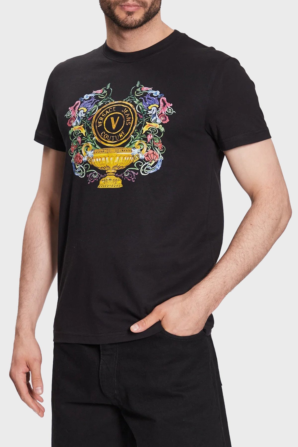 Baskılı Bisiklet Yaka % 100 Pamuk Regular Fit Erkek T Shirt 74GAHF01 CJ00F 899 SİYAH
