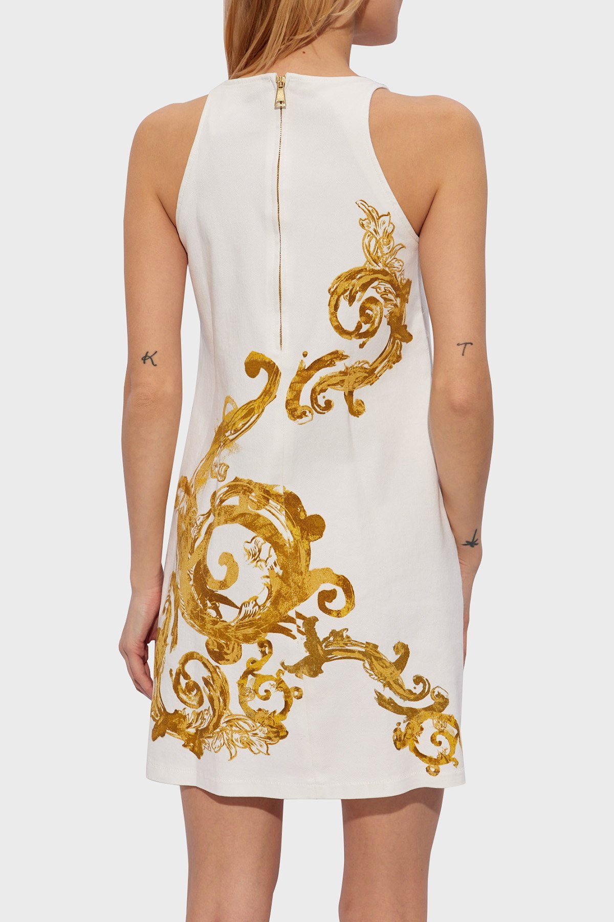 Versace Jeans Couture Desenli Bodycon Mini Bayan Elbise 76HAO944 JS348 G03 BEYAZ-GOLD - Versace Jeans Couture Versace Jeans Couture Desenli Bodycon Mini Bayan Elbise 76HAO944 JS348 G03 BEYAZ-GOLD - Versace Jeans Couture (1)