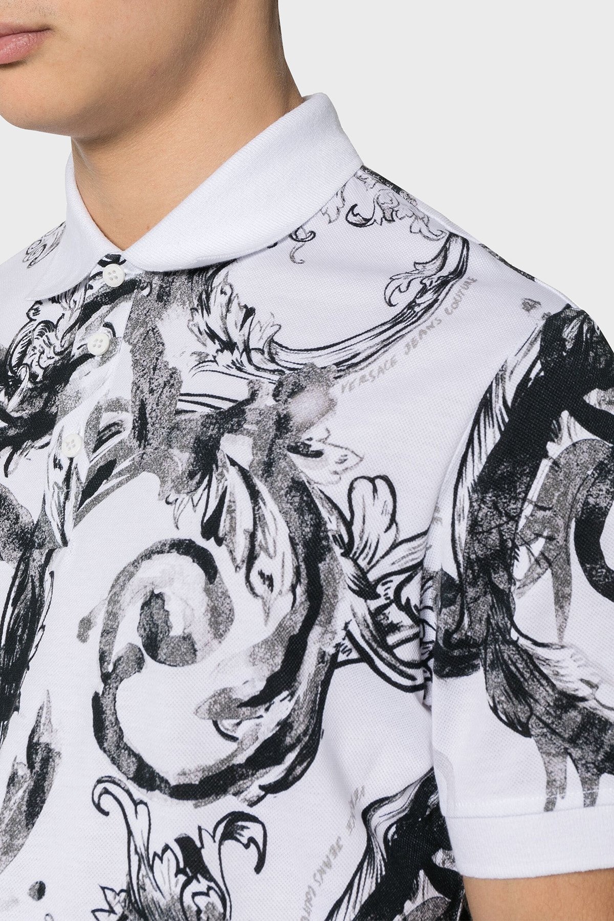 Desenli Pamuklu Slim Fit Erkek Polo Yaka T Shirt 76GAG6S0 JS286 003 BEYAZ