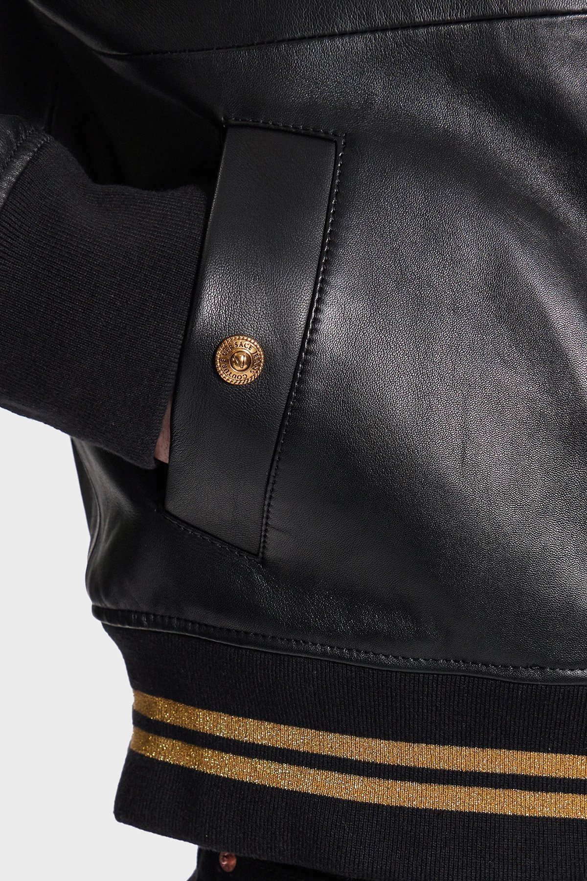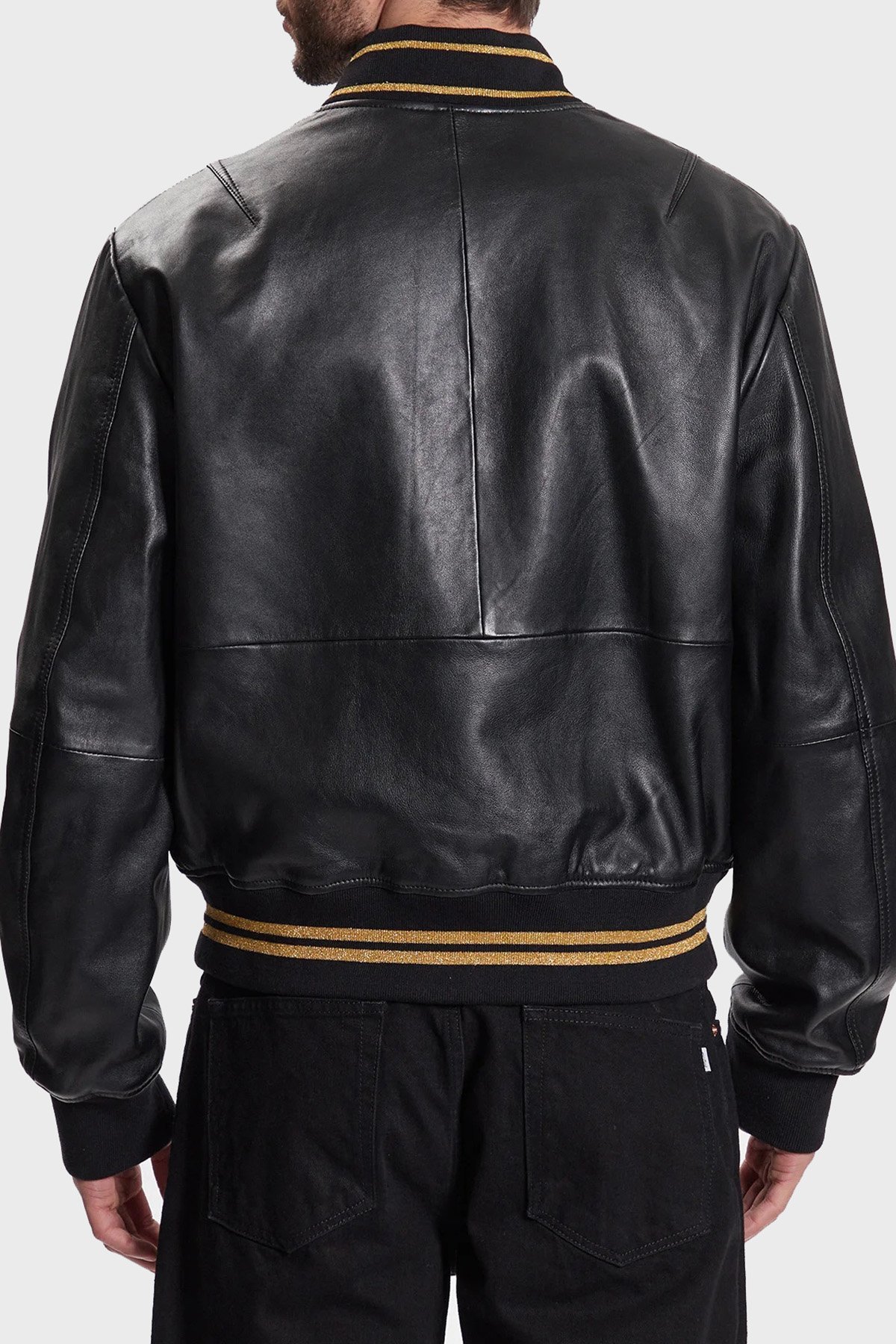 Kolej Yaka Cepli Logolu Regular Fit Erkek Deri Ceket 74GAVP07 CPPS3 899 SİYAH