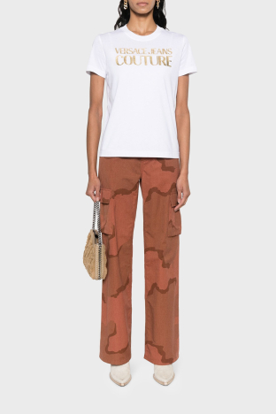 Logolu Bisiklet Yaka % 100 Pamuk Regular Fit Bayan T Shirt 76HAHT04 CJ00T G03 BEYAZ