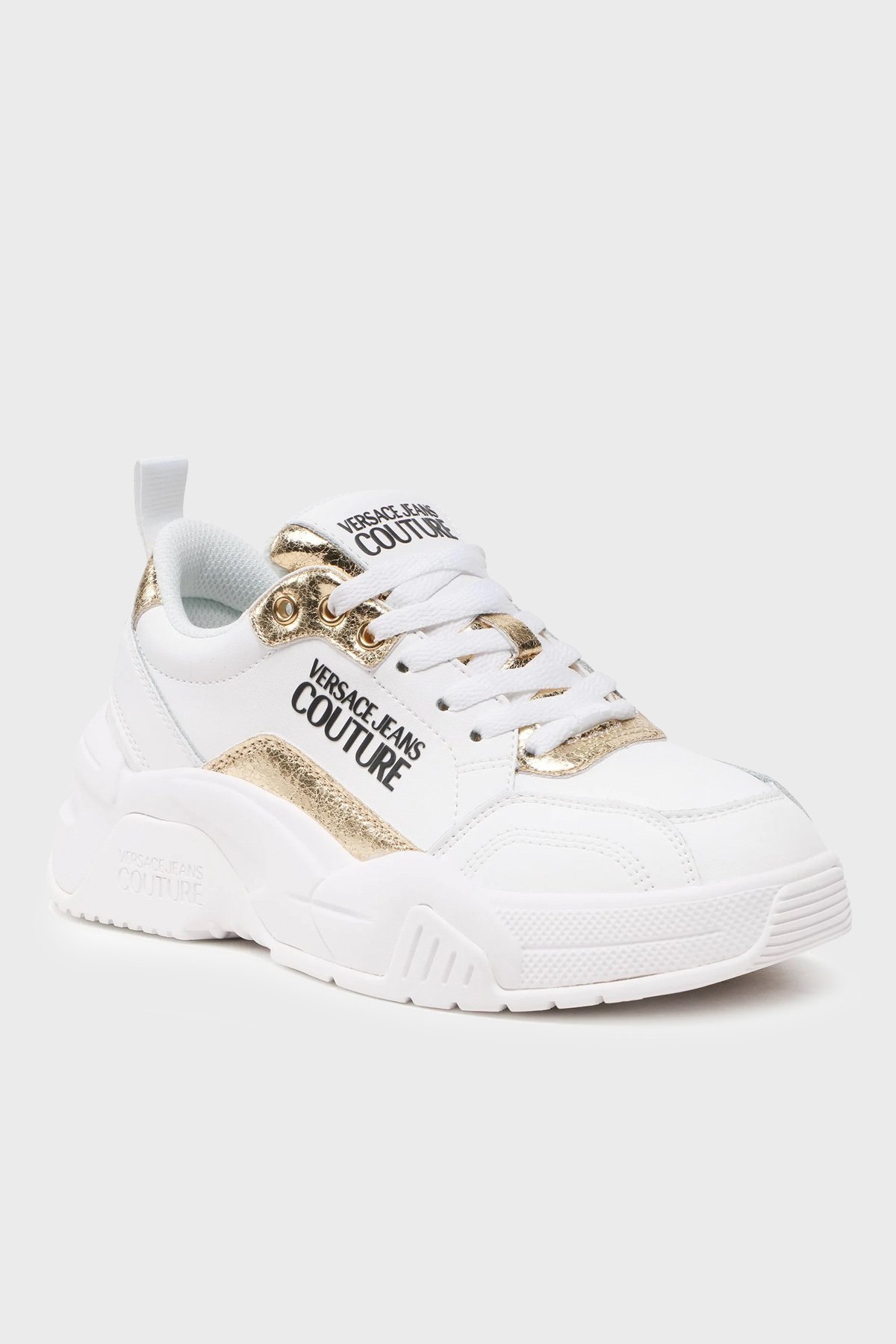 Logolu Kalın Tabanlı Deri Sneaker Bayan Ayakkabı 74VA3SF4 ZP267 G03 BEYAZ-GOLD