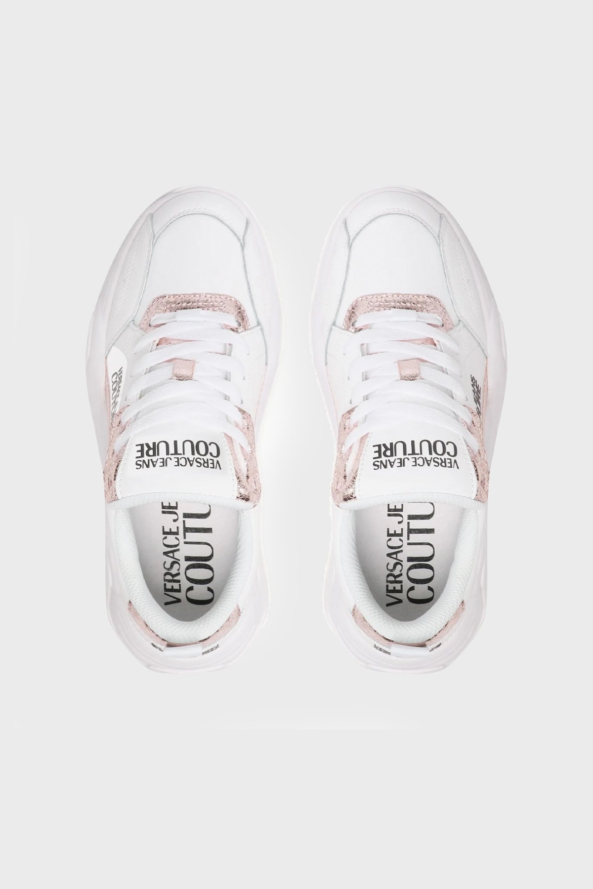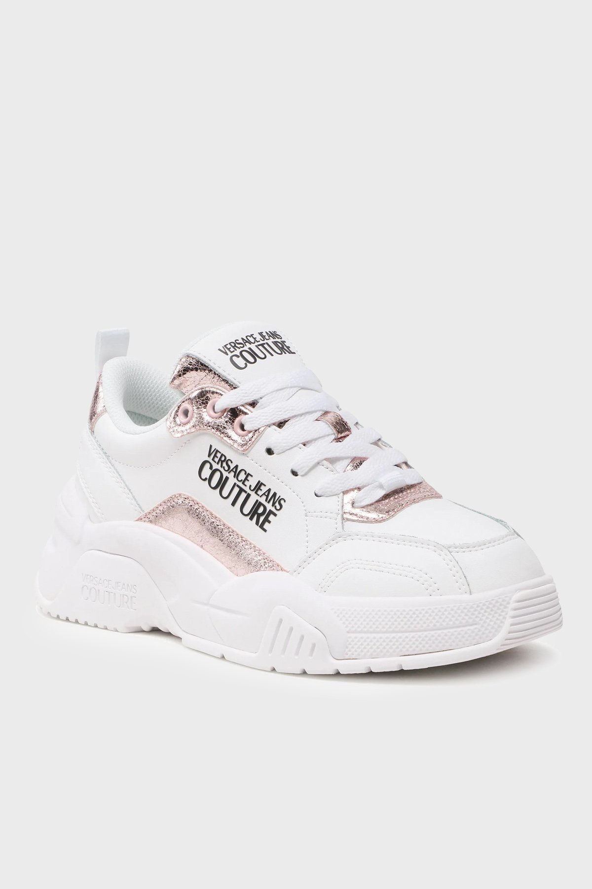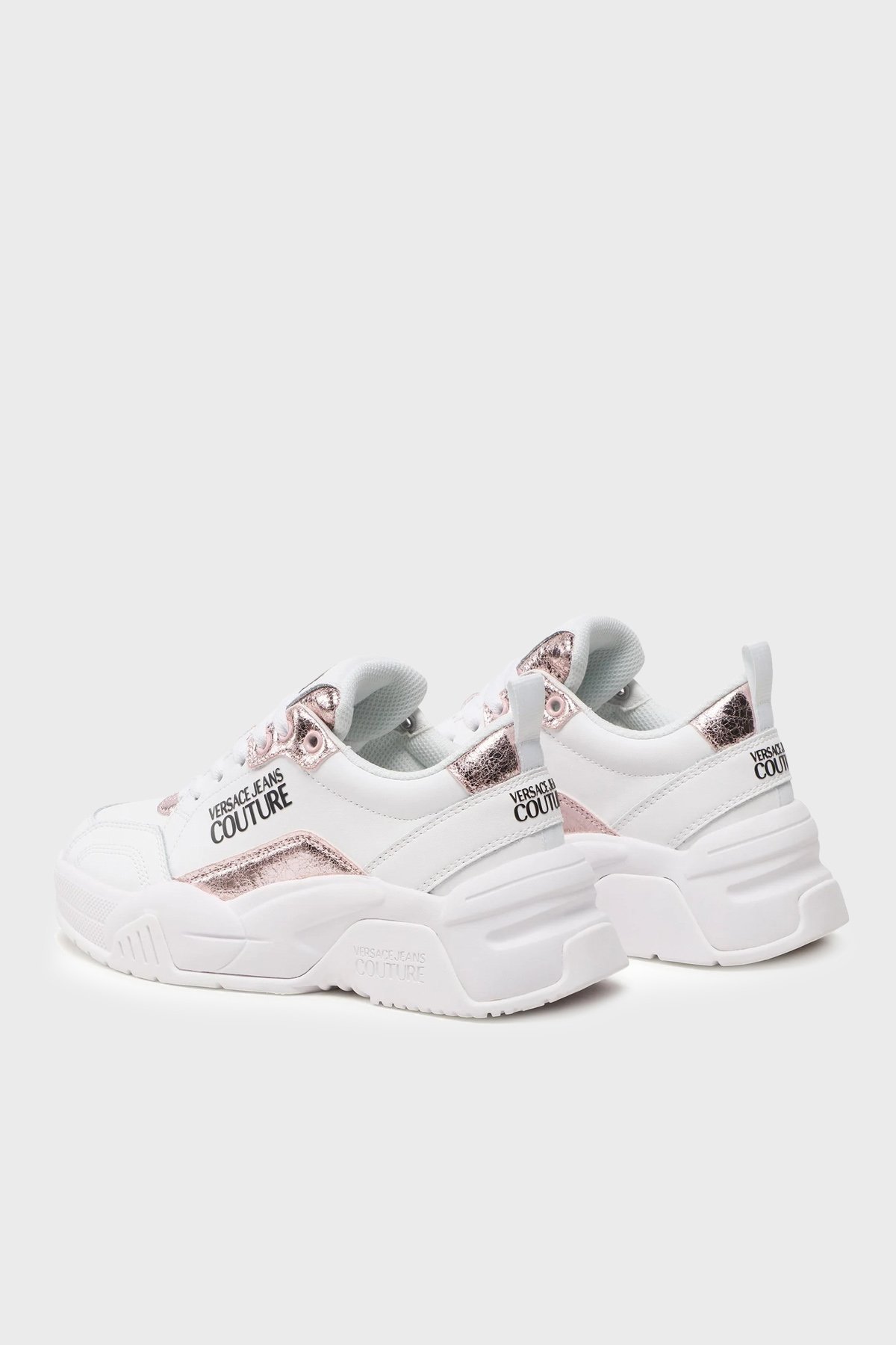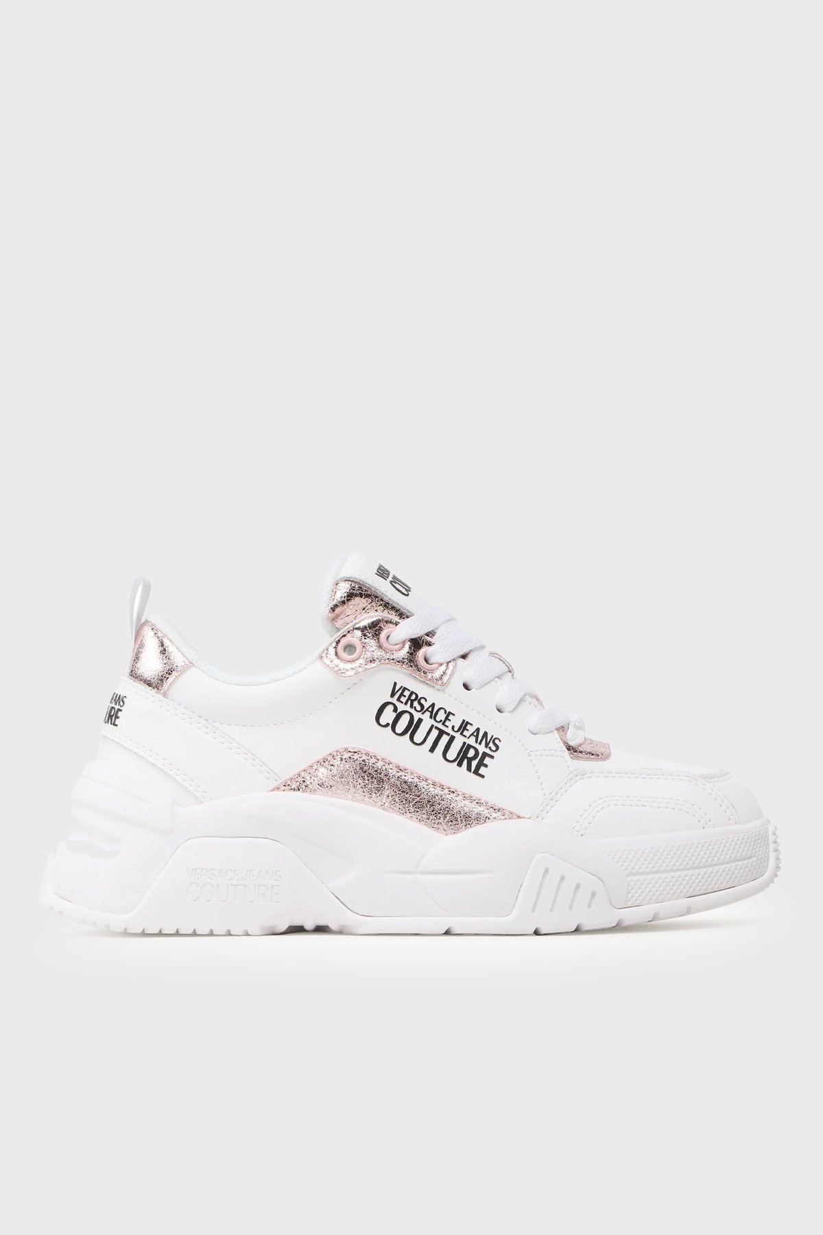 Logolu Kalın Tabanlı Deri Sneaker Bayan Ayakkabı 74VA3SF4 ZP267 PX7 BEYAZ-PEMBE