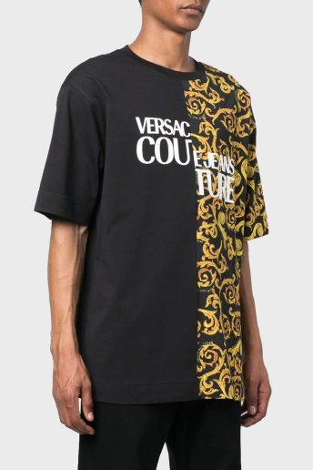 Pamuklu Oversize Bisiklet Yaka Erkek T Shirt 74GAHE06 CJ00E G89 SİYAH-GOLD