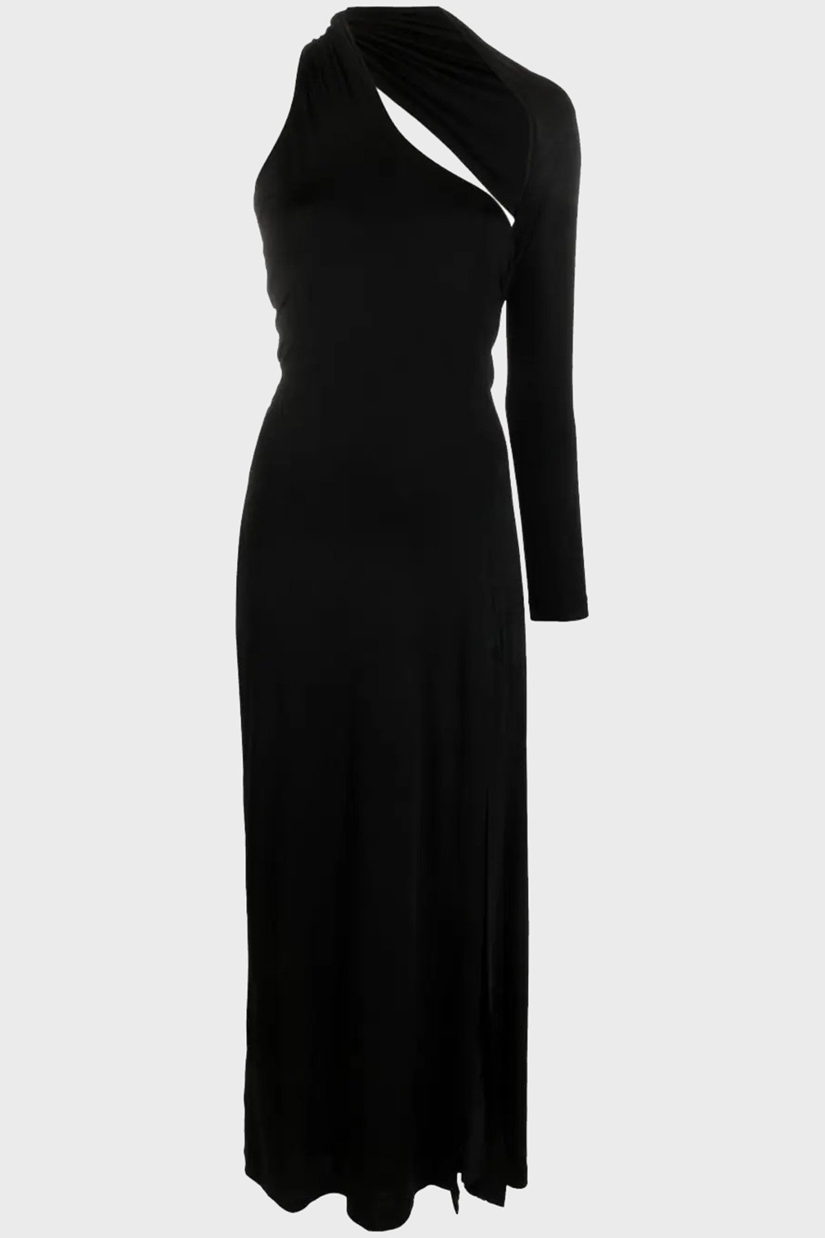 Sırt Dekolteli Asimetrik Yaka Asimetrik Kol Regular Fit Bayan Elbise 74HAO918 J0049 899 SİYAH