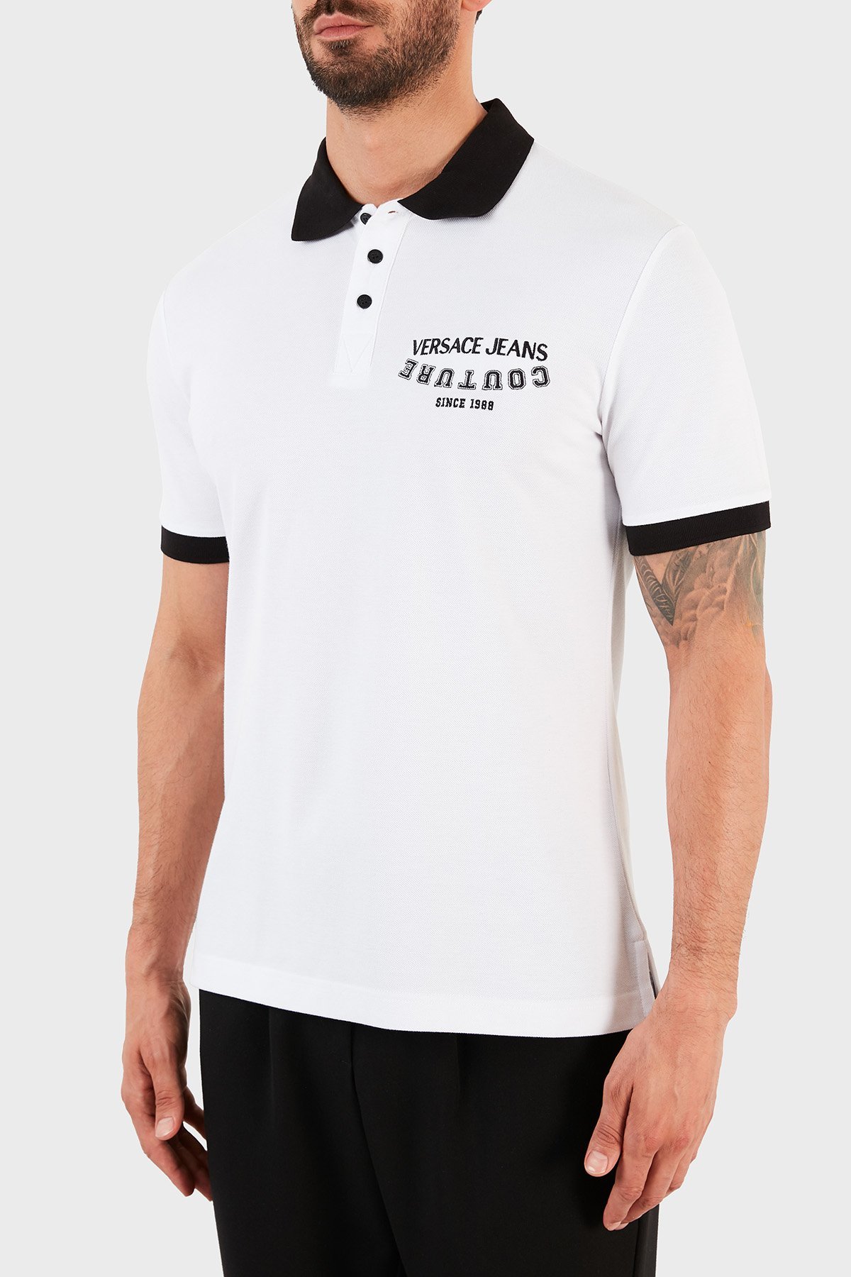 Logolu % 100 Pamuk Slim Fit T Shirt Erkek Polo B3GWA7T7 36571 003 BEYAZ