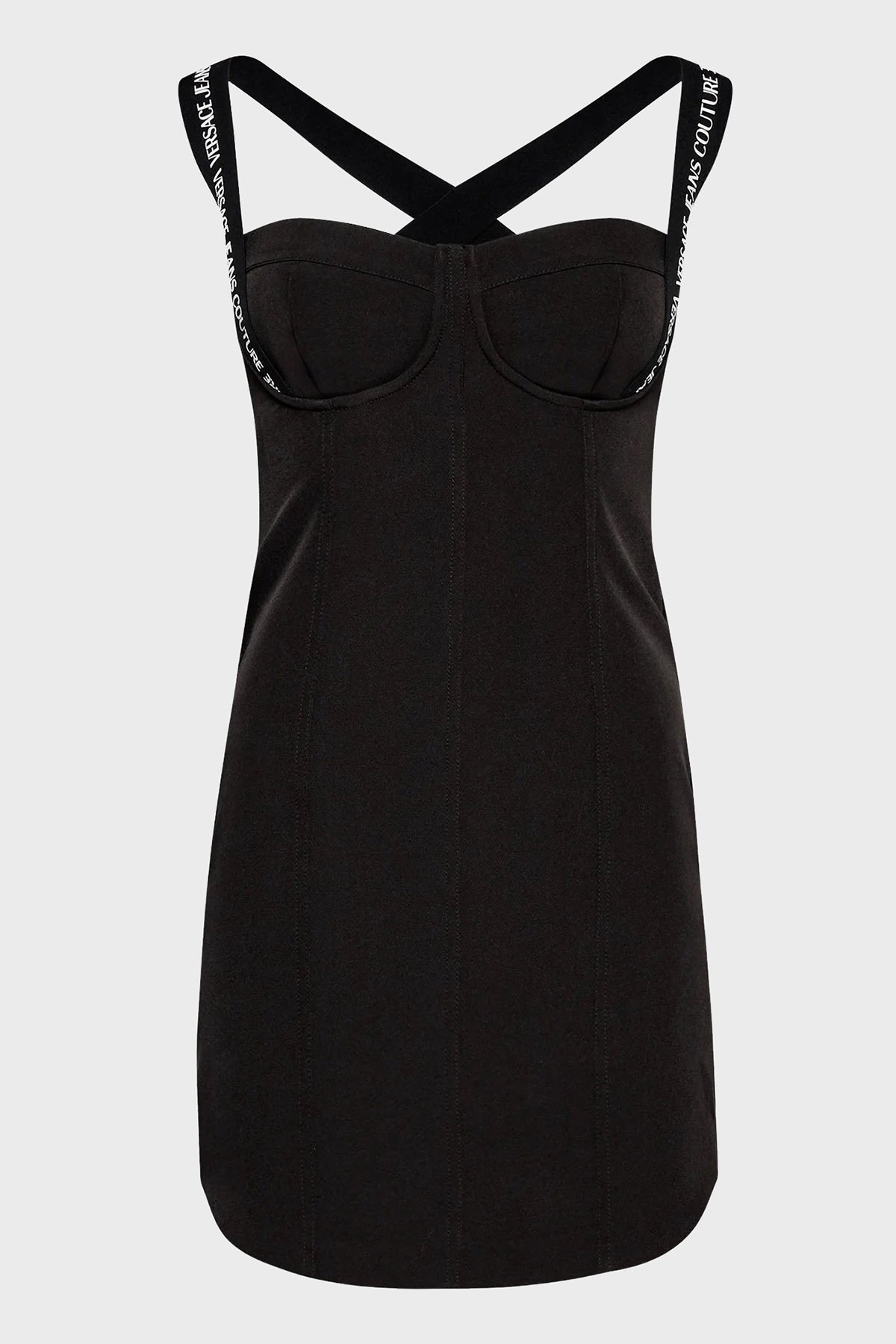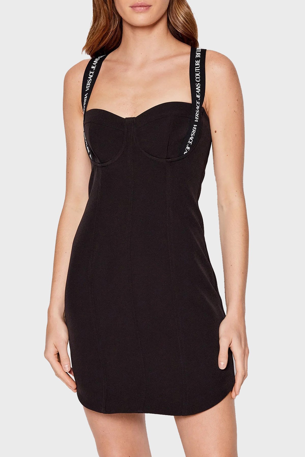 Versace Kalın Askılı Slim Fit Kalp Yaka Streç Mini Bayan Elbise 73HAO917 N0103 899 SİYAH