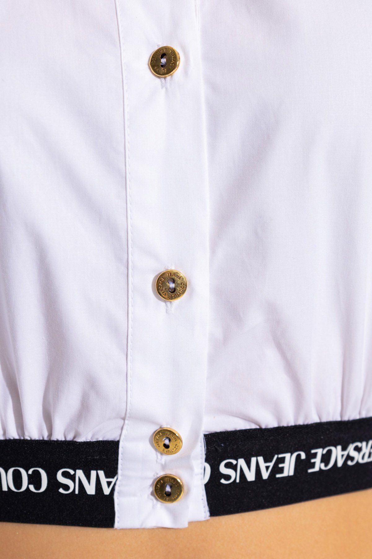 Versace Logo Bantlı % 100 Pamuk Cropped Fit Bayan Gömlek 73HAL200 N0132 003 BEYAZ