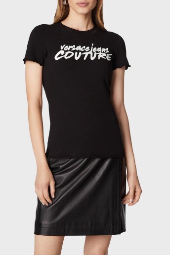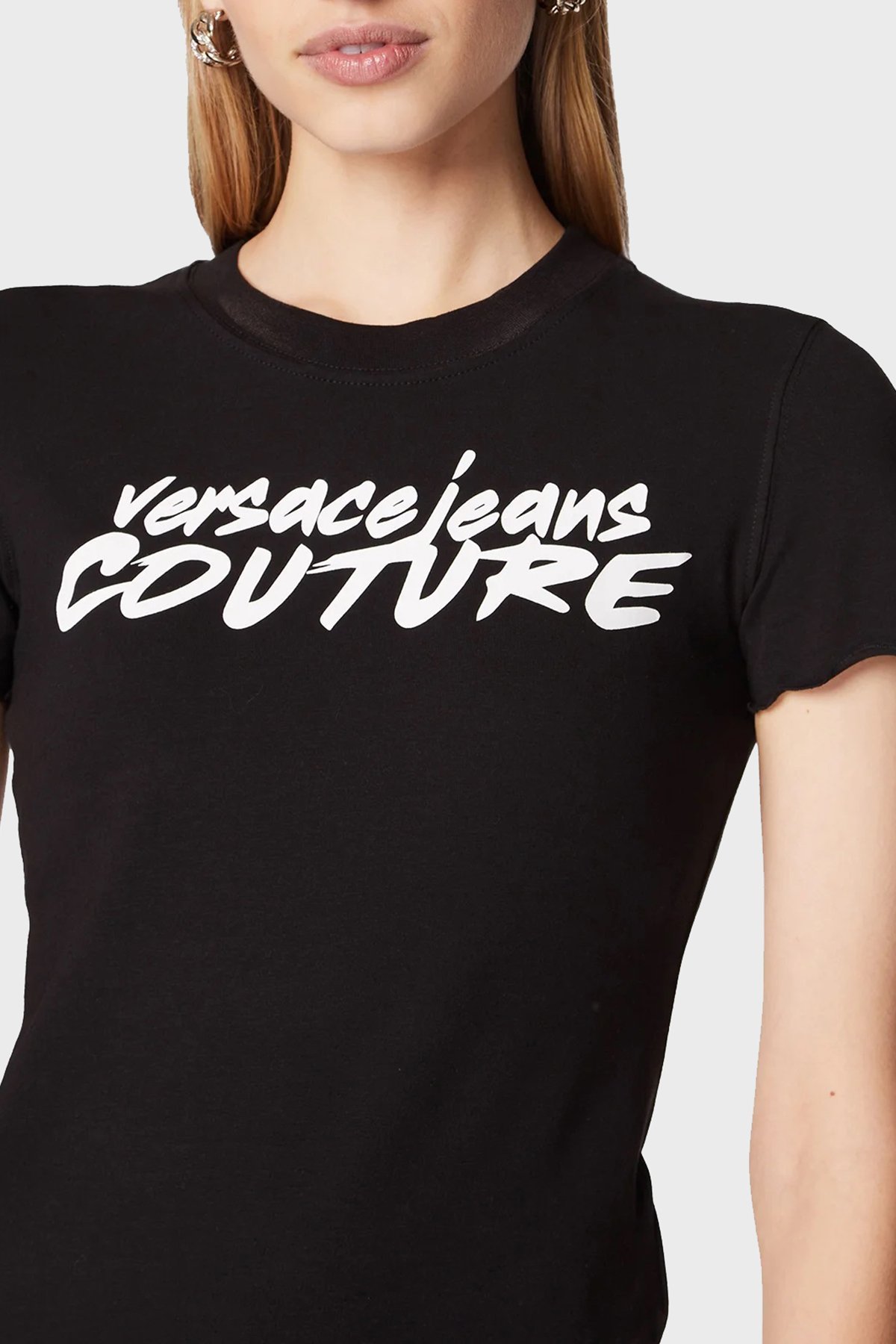 Versace Pamuklu Esnek Slim Fit Bisiklet Yaka Bayan T Shirt 73HAHT15 CJ03O 899 SİYAH