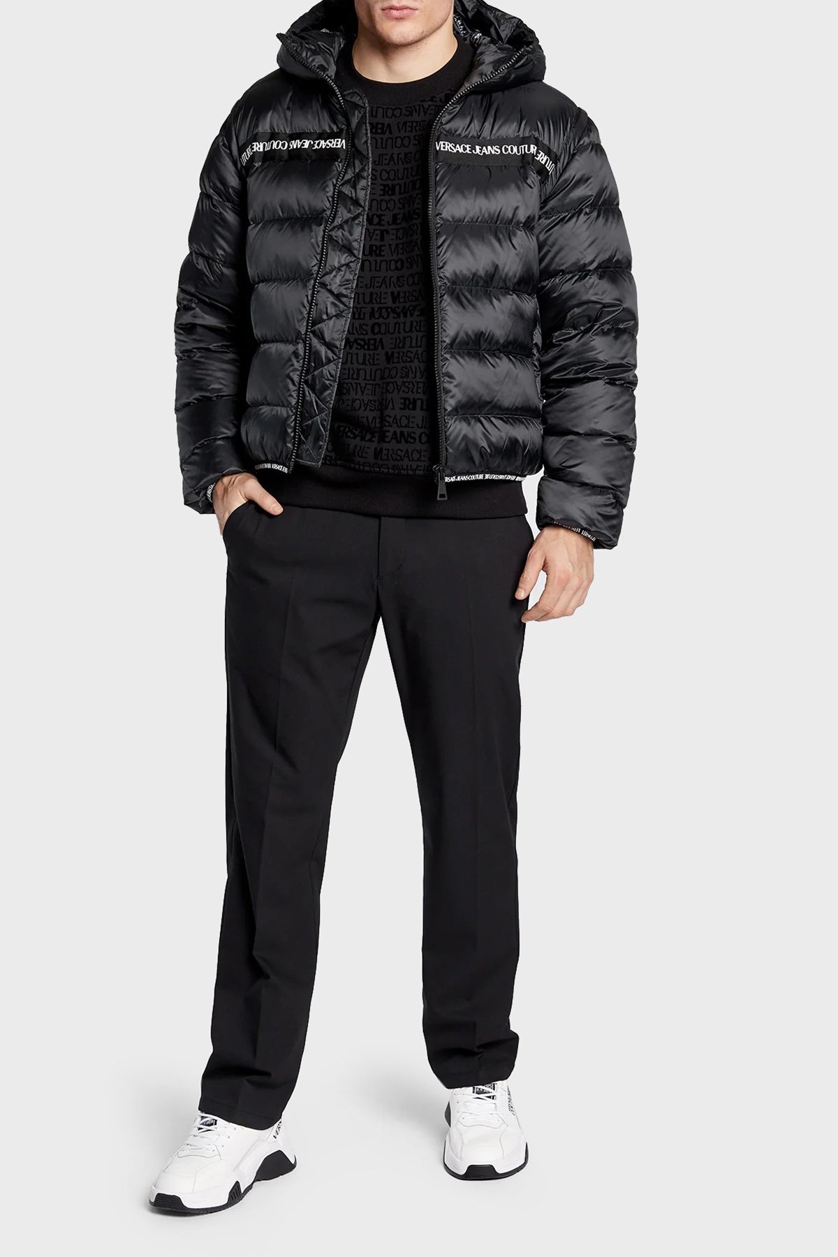 Versace Relaxed Fit Kuş Tüyü Dolgulu Kapüşonlu Şişme Erkek Mont 73GAU403 CQN6D 899 SİYAH