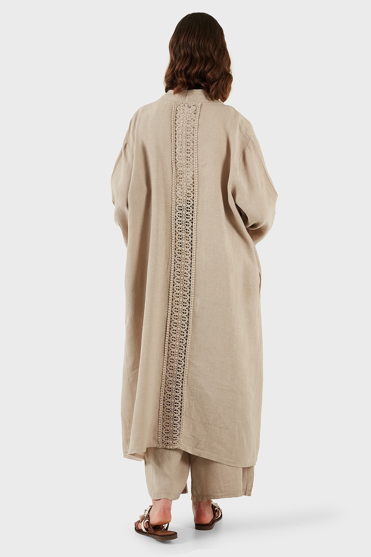 Oversize Arkası Dantel Detaylı Uzun Keten Bayan Kimono 7183687 TAŞ