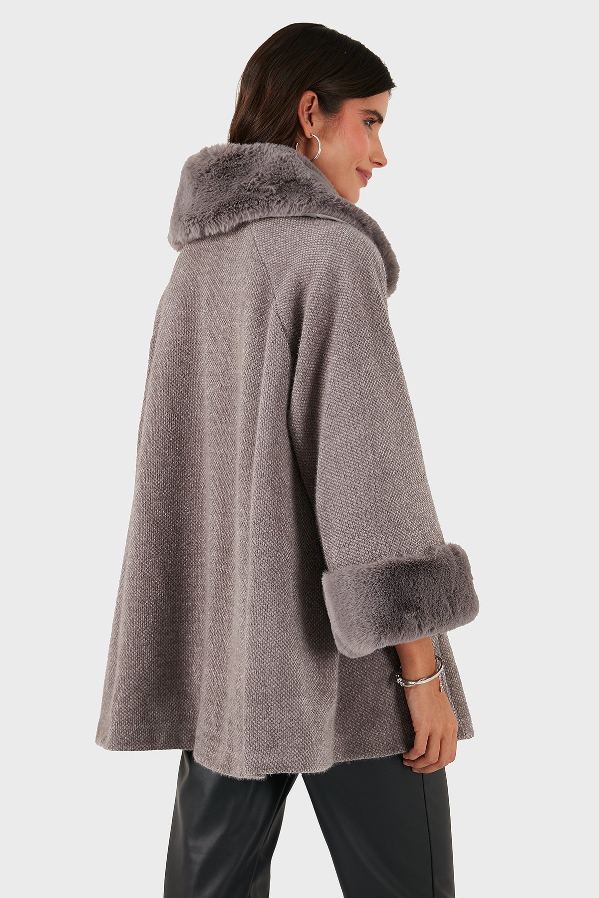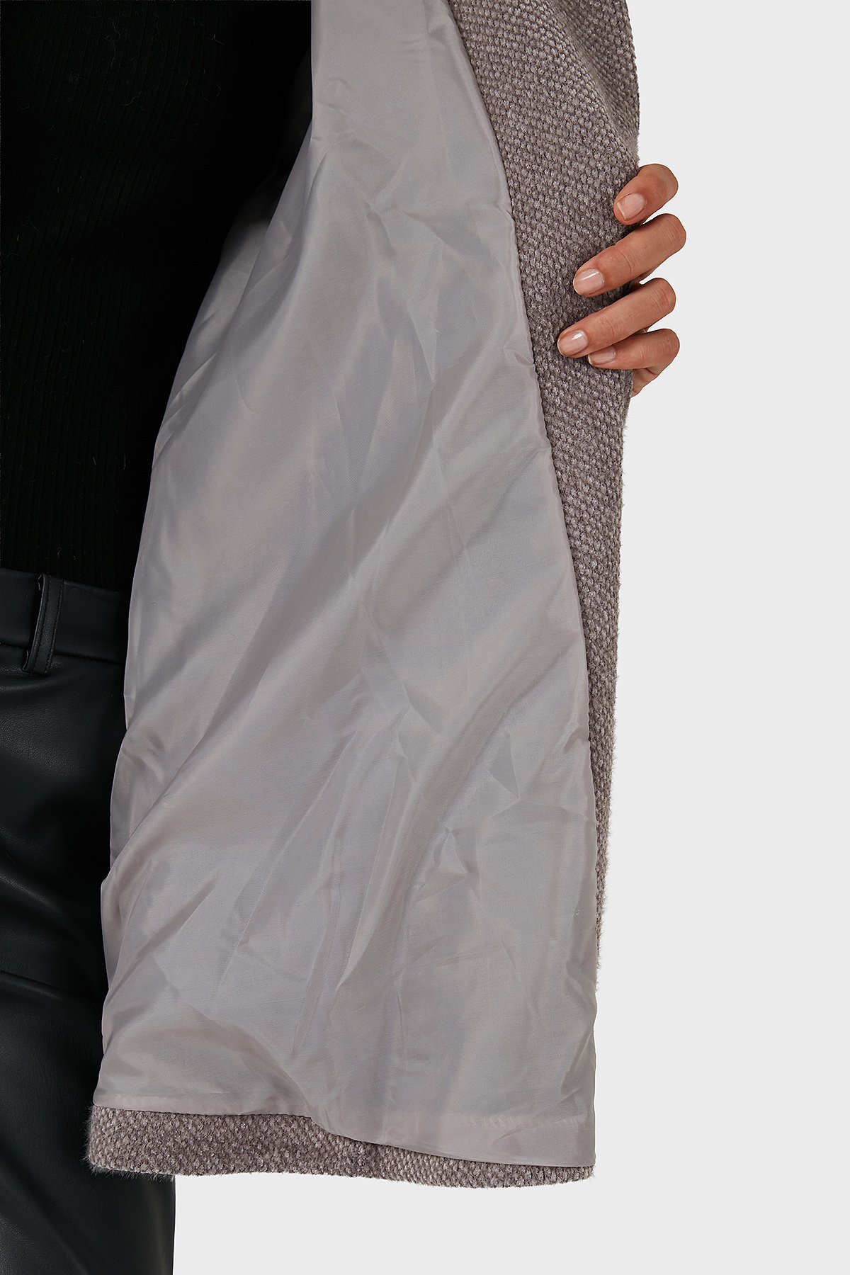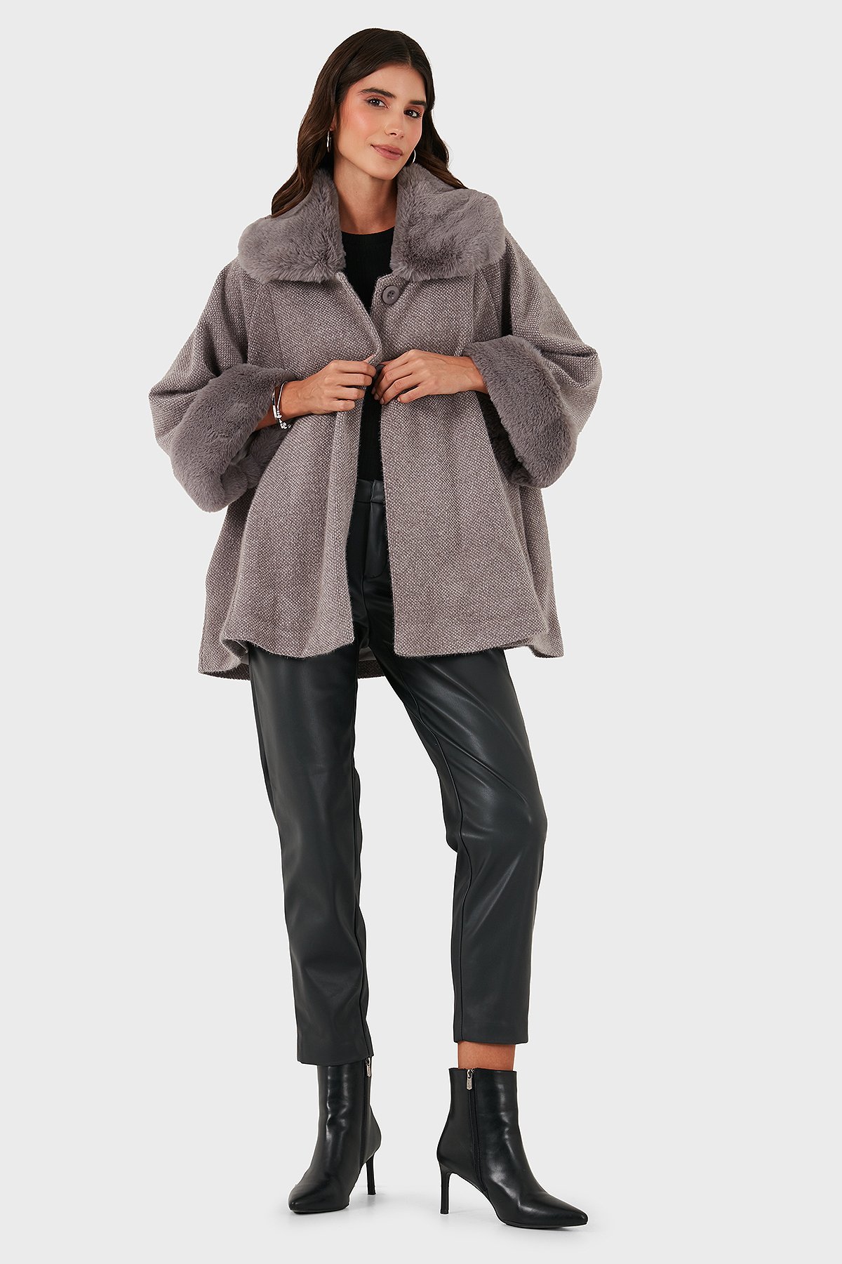 Oversize Fit Ceket Yaka Düğmeli Kürk Bayan Mont 6858060 GRİ