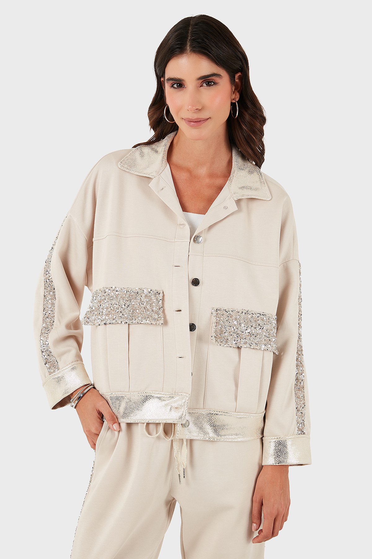 Oversize Fit Gömlek Yaka Cep Detaylı Bayan Ceket 69143570 BEJ