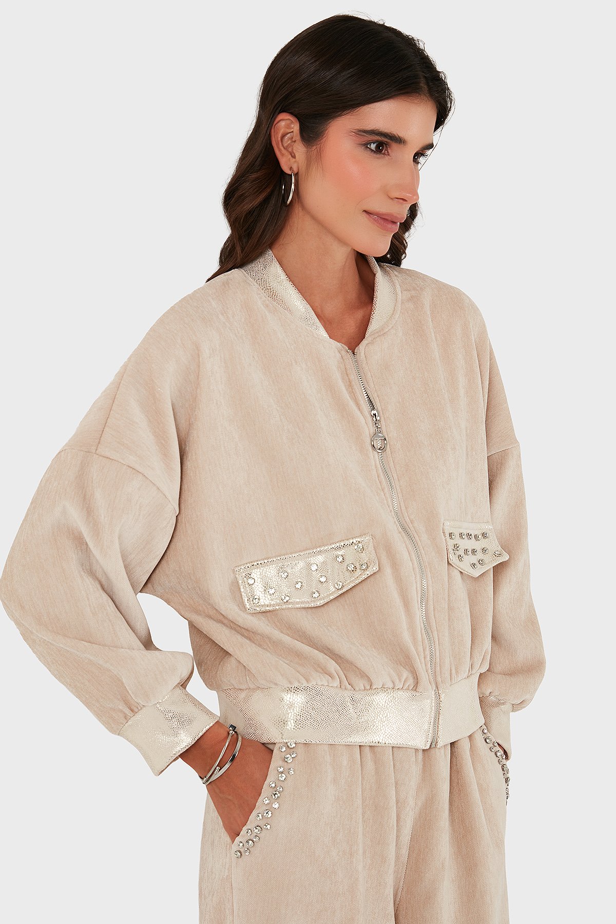 Oversize Fit Kolej Yaka Fermuarlı Bayan Ceket 69143940 BEJ