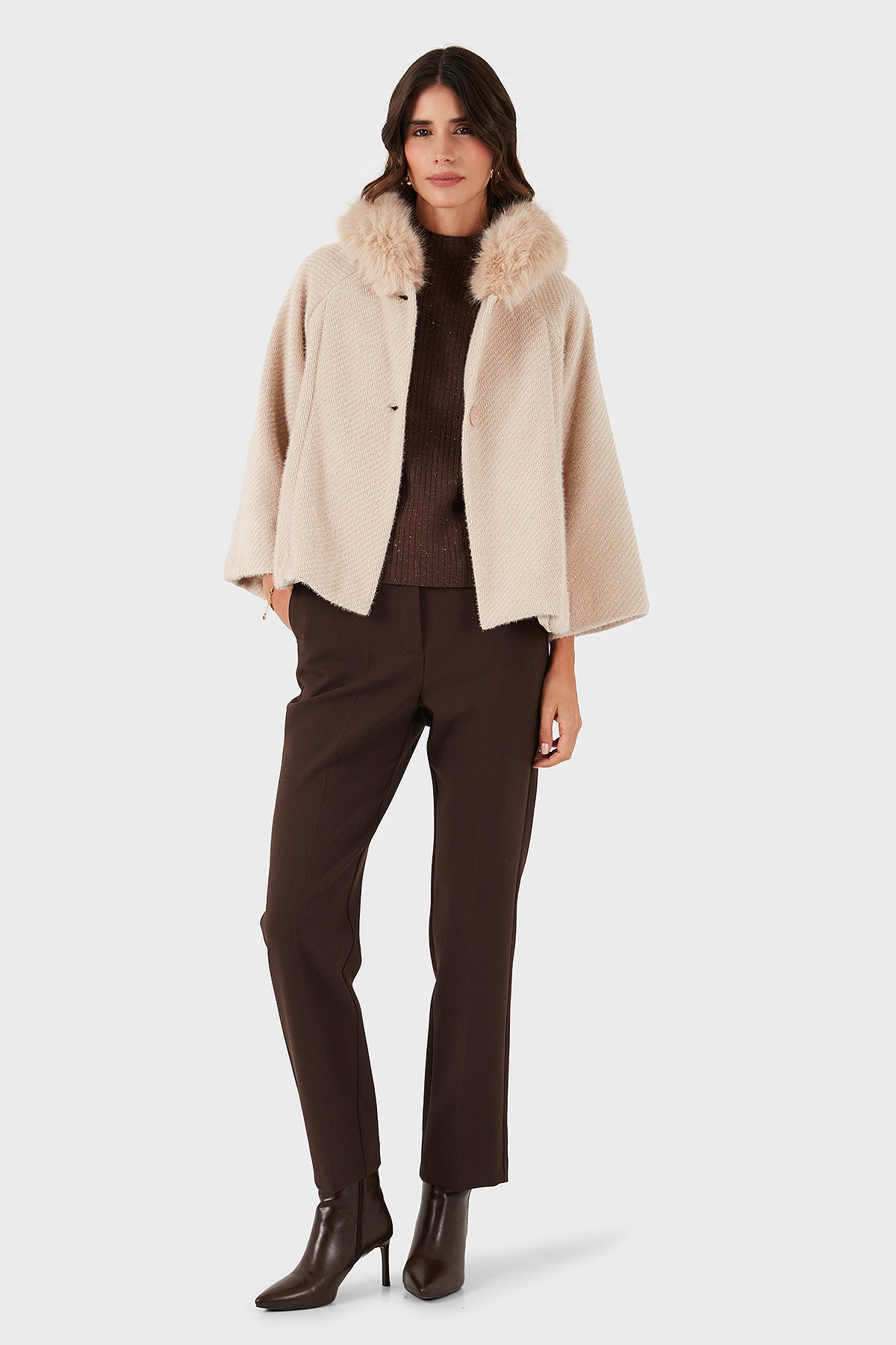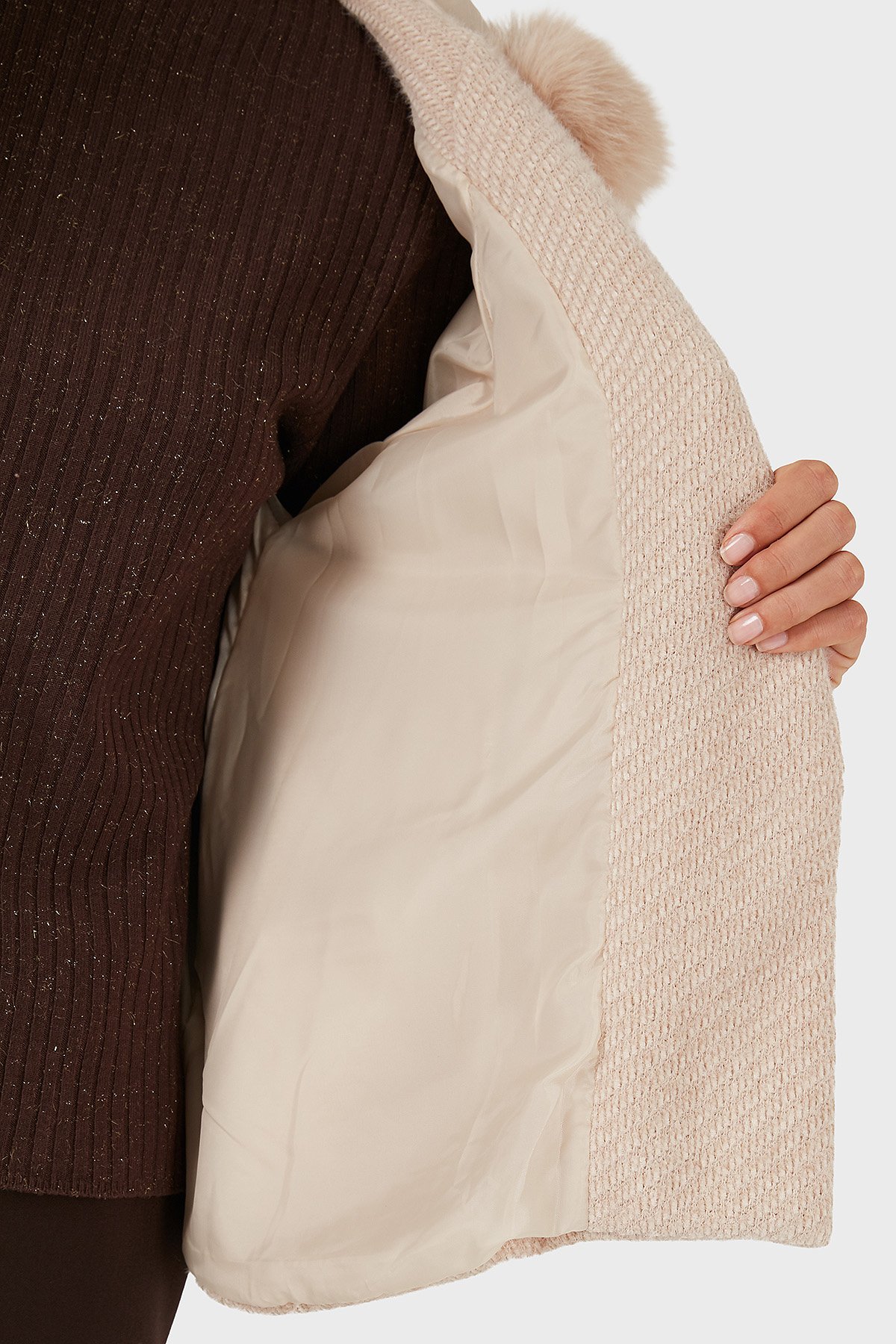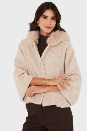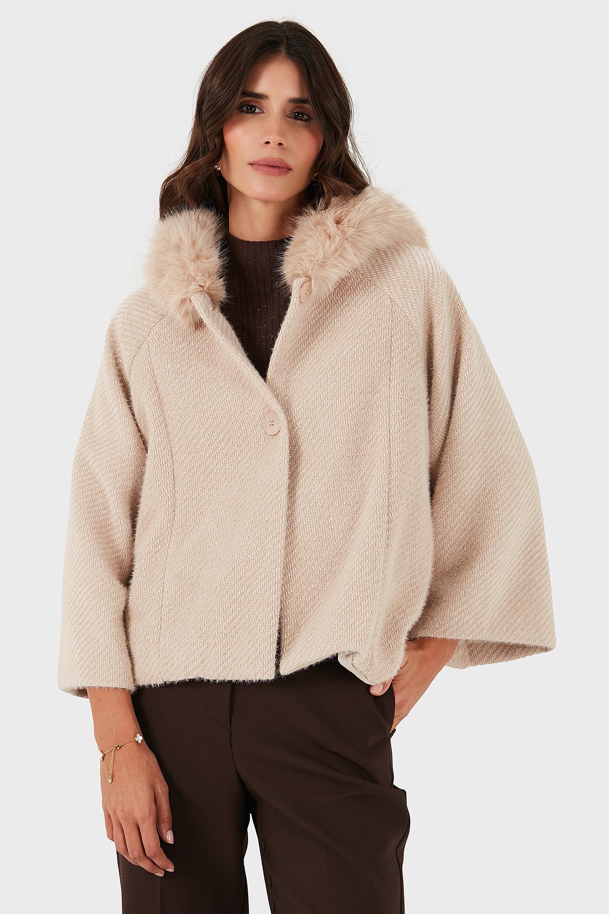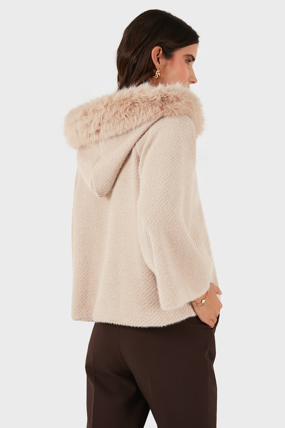 Oversize Yumuşak Tüylü Kapüşon Truvakar Kollu Bayan Mont 690920 BEJ