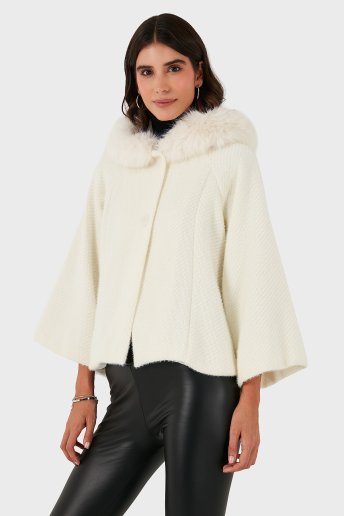 Oversize Yumuşak Tüylü Kapüşon Truvakar Kollu Bayan Mont 690920 EKRU