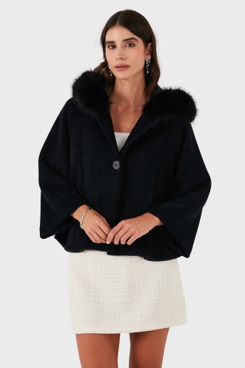 Oversize Yumuşak Tüylü Kapüşon Truvakar Kollu Bayan Mont 690920 SİYAH